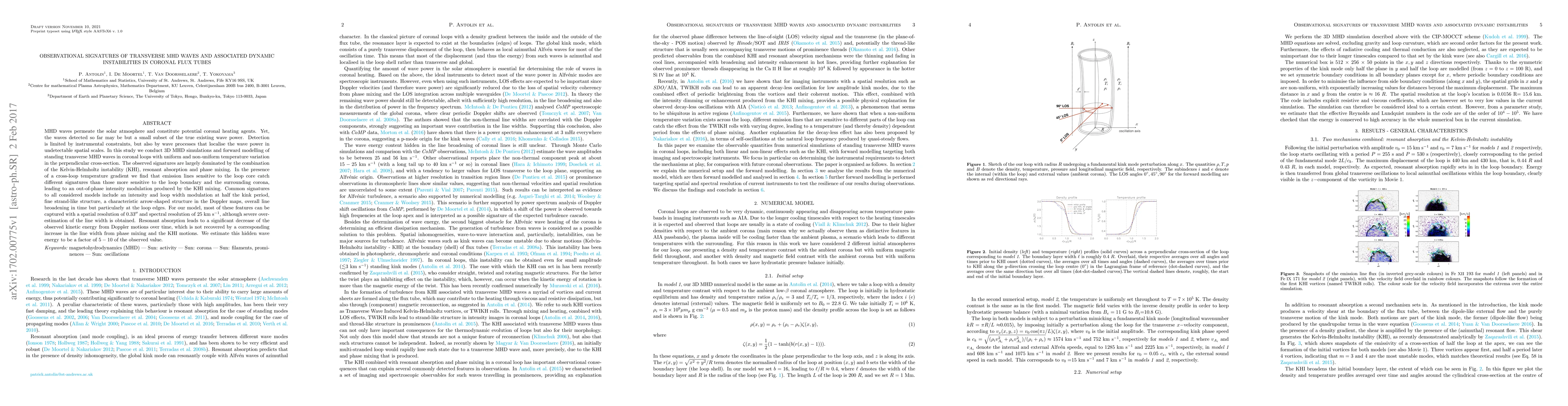 MHD waves permeate the solar atmosphere and constitute potential coronal heating agents. Yet, the waves detected so far may be but a small subset of the true existing wave power. Detection is limited by instrumental constraints, but also by wave processes that localise the wave power in undetectable spatial scales. In this study we conduct 3D MHD simulations and forward modelling of standing transverse MHD waves in coronal loops with uniform and non-uniform temperature variation in the perpendicular cross-section. The observed signatures are largely dominated by the combination of the Kelvin-Helmholtz instability (KHI), resonant absorption and phase mixing. In the presence of a cross-loop temperature gradient we find that emission lines sensitive to the loop core catch different signatures than those more sensitive to the loop boundary and the surrounding corona, leading to an out-of-phase intensity modulation produced by the KHI mixing. Common signatures to all considered models include an intensity and loop width modulation at half the kink period, fine strand-like structure, a characteristic arrow-shaped structure in the Doppler maps, overall line broadening in time but particularly at the loop edges. For our model, most of these features can be captured with a spatial resolution of $0.33\arcsec$ and spectral resolution of 25~km~s$^{-1}$, although severe over-estimation of the line width is obtained. Resonant absorption leads to a significant decrease of the observed kinetic energy from Doppler motions over time, which is not recovered by a corresponding increase in the line width from phase mixing and the KHI motions. We estimate this hidden wave energy to be a factor of $5-10$ of the observed value.