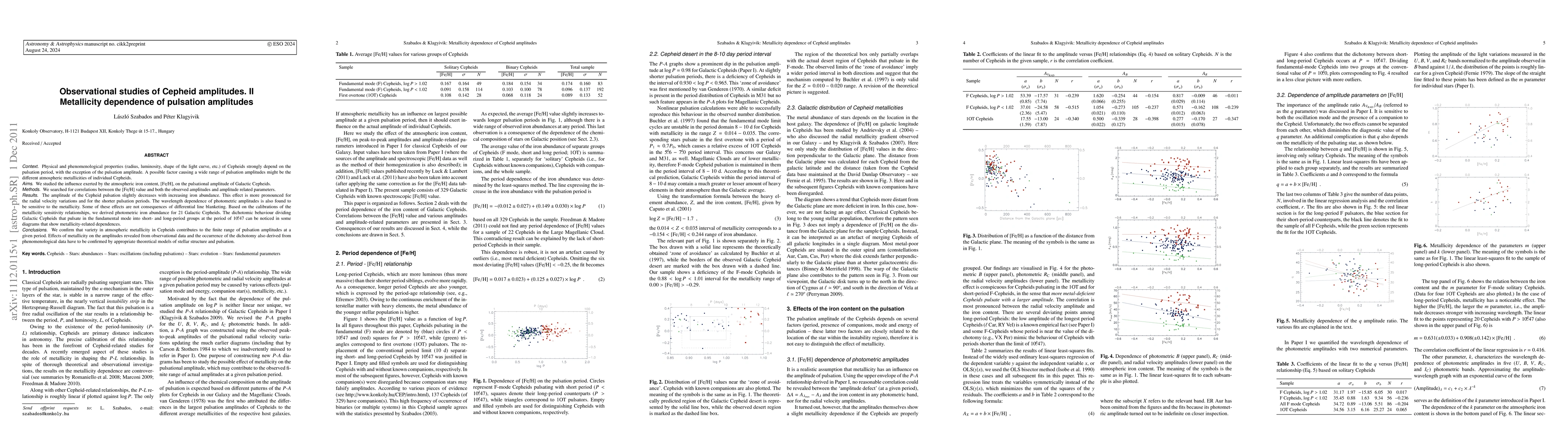 This study investigates how the atmospheric iron content (metallicity) affects the pulsation amplitudes of Cepheid variables, finding that higher iron abundances slightly decrease pulsation amplitudes, especially for shorter periods. The research also confirms the influence of metallicity on radial velocity variations and the wavelength dependence of photometric amplitudes, suggesting that metallicity contributes to the observed range of pulsation amplitudes in Cepheids.