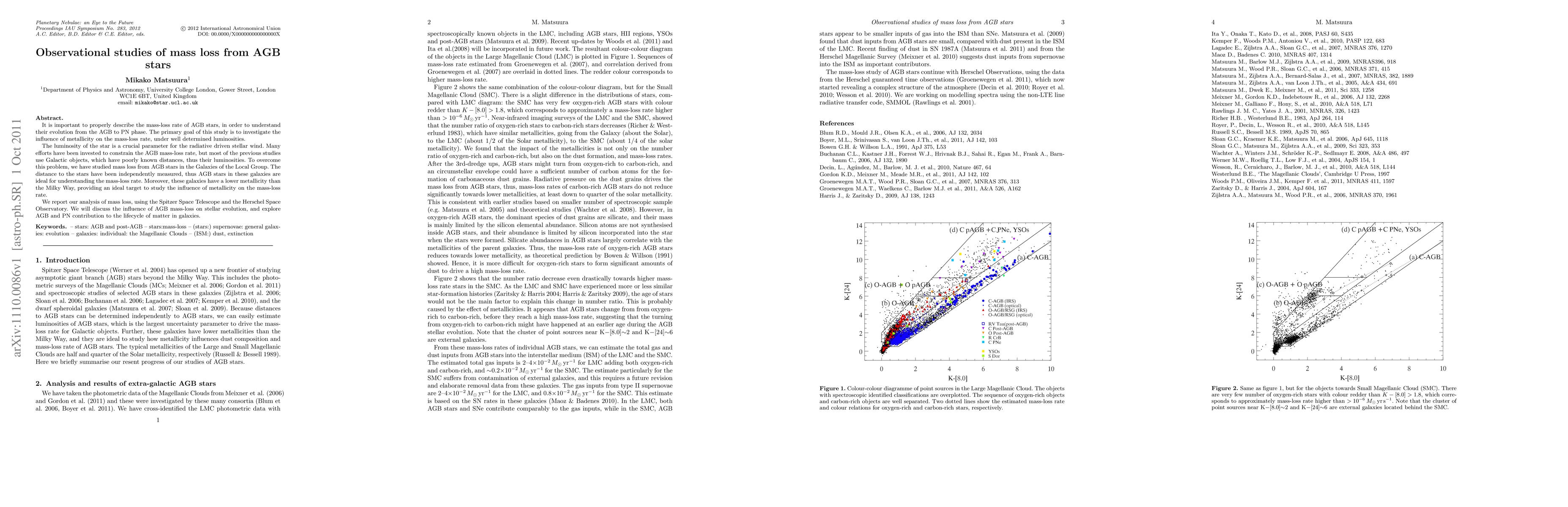 It is important to properly describe the mass-loss rate of AGB stars, in order to understand their evolution from the AGB to PN phase. The primary goal of this study is to investigate the influence of metallicity on the mass-loss rate, under well determined luminosities. The luminosity of the star is a crucial parameter for the radiative driven stellar wind. Many efforts have been invested to constrain the AGB mass-loss rate, but most of the previous studies use Galactic objects, which have poorly known distances, thus their luminosities. To overcome this problem, we have studied mass loss from AGB stars in the Galaxies of the Local Group. The distance to the stars have been independently measured, thus AGB stars in these galaxies are ideal for understanding the mass-loss rate. Moreover, these galaxies have a lower metallicity than the Milky Way, providing an ideal target to study the influence of metallicity on the mass-loss rate. We report our analysis of mass loss, using the Spitzer Space Telescope and the Herschel Space Observatory. We will discuss the influence of AGB mass-loss on stellar evolution, and explore AGB and PN contribution to the lifecycle of matter in galaxies.