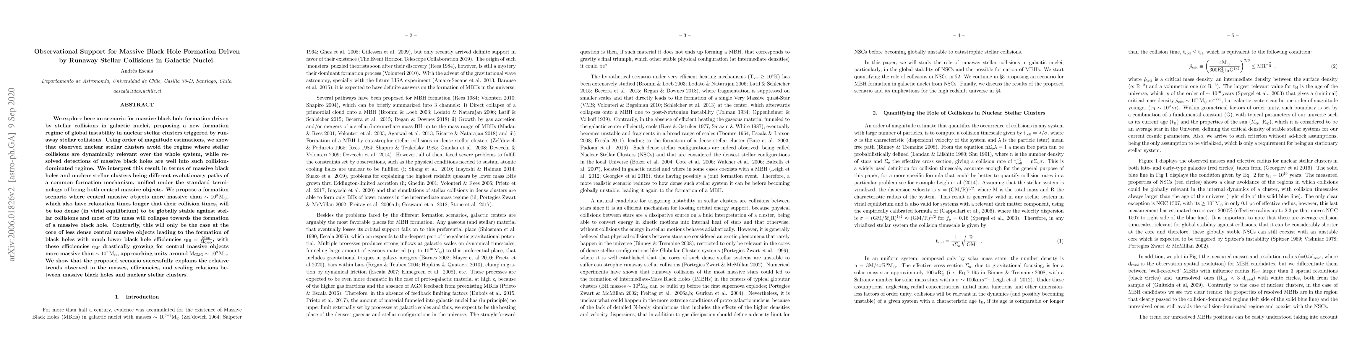 This paper proposes a new mechanism for massive black hole formation driven by runaway stellar collisions in galactic nuclei, suggesting that such collisions can lead to the collapse of dense stellar clusters into black holes. It demonstrates that observed clusters avoid collision-dominated regimes, while massive black holes reside in them, indicating different evolutionary paths from a common formation mechanism.