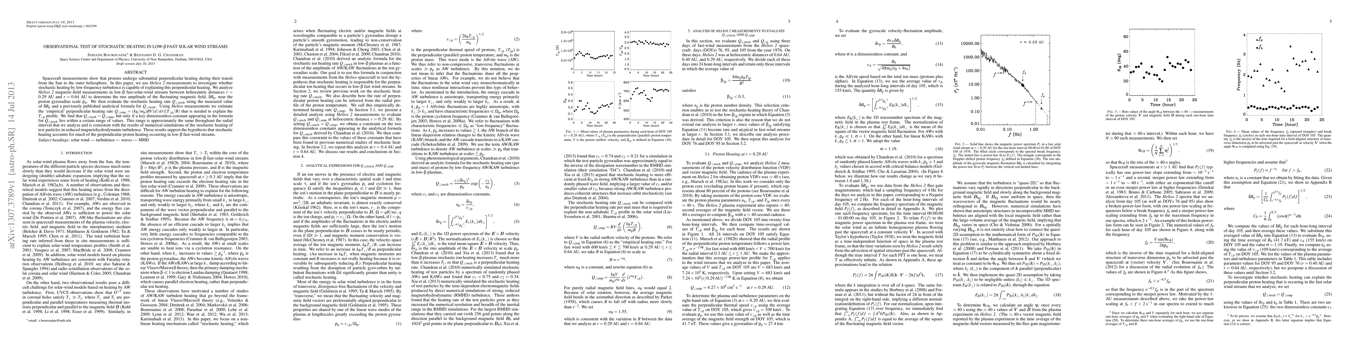 This paper investigates whether stochastic heating by low-frequency turbulence explains the substantial perpendicular heating of protons observed in low-$\beta$ fast solar wind streams. Using Helios 2 measurements, the study finds that the stochastic heating rate aligns with the empirical heating rate, supporting the hypothesis that stochastic heating is a major factor in this heating process.