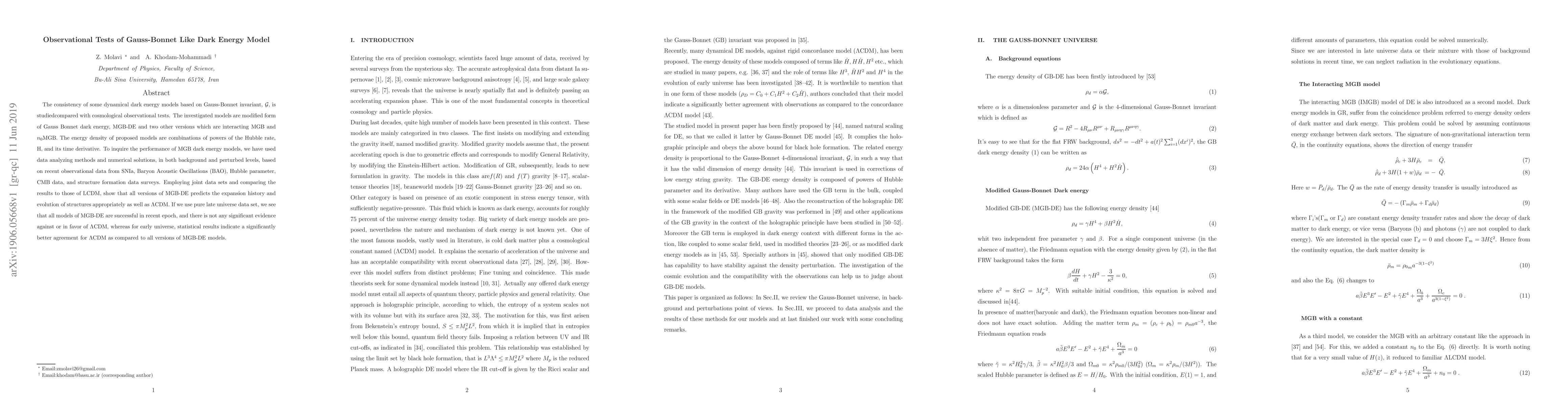 The consistency of some dynamical dark energy models based on Gauss-Bonnet invariant, ${\cal G}$, is studied compared with cosmological observational tests. The investigated models are modified form of Gauss Bonnet dark energy, MGB-DE and two other versions which are interacting MGB and $n_0$MGB. The energy density of proposed models are combinations of powers of the Hubble rate, H, and its time derivative. To inquire the performance of MGB dark energy models, we have used data analyzing methods and numerical solutions, in both background and perturbed levels, based on recent observational data from SNIa, Baryon Acoustic Oscillations (BAO), Hubble parameter, CMB data, and structure formation data surveys. Employing joint data sets and comparing the results to those of LCDM, show that all versions of MGB-DE predicts the expansion history and evolution of structures appropriately as well as $\Lambda$CDM. If we use pure late universe data set, we see that all models of MGB-DE are successful in recent epoch, and there is not any significant evidence against or in favor of $\Lambda$CDM, whereas for early universe, statistical results indicate a significantly better agreement for $\Lambda$CDM as compared to all versions of MGB-DE models.