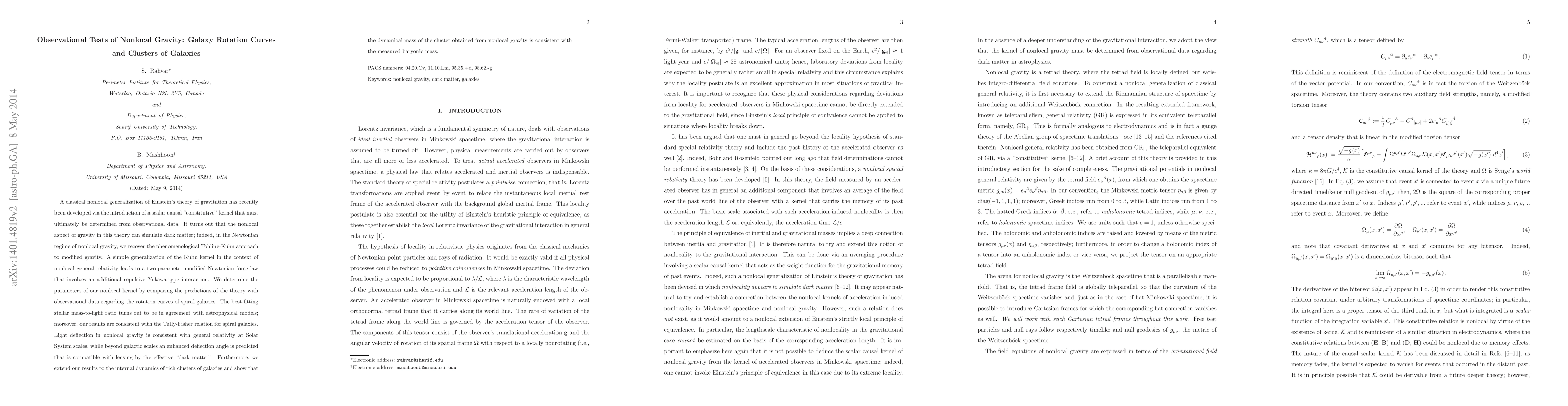 A classical nonlocal generalization of Einstein's theory of gravitation has recently been developed via the introduction of a scalar causal "constitutive" kernel that must ultimately be determined from observational data. It turns out that the nonlocal aspect of gravity in this theory can simulate dark matter; indeed, in the Newtonian regime of nonlocal gravity, we recover the phenomenological Tohline-Kuhn approach to modified gravity. A simple generalization of the Kuhn kernel in the context of nonlocal general relativity leads to a two-parameter modified Newtonian force law that involves an additional repulsive Yukawa-type interaction. We determine the parameters of our nonlocal kernel by comparing the predictions of the theory with observational data regarding the rotation curves of spiral galaxies. The best-fitting stellar mass-to-light ratio turns out to be in agreement with astrophysical models; moreover, our results are consistent with the Tully-Fisher relation for spiral galaxies. Light deflection in nonlocal gravity is consistent with general relativity at Solar System scales, while beyond galactic scales an enhanced deflection angle is predicted that is compatible with lensing by the effective "dark matter". Furthermore, we extend our results to the internal dynamics of rich clusters of galaxies and show that the dynamical mass of the cluster obtained from nonlocal gravity is consistent with the measured baryonic mass.