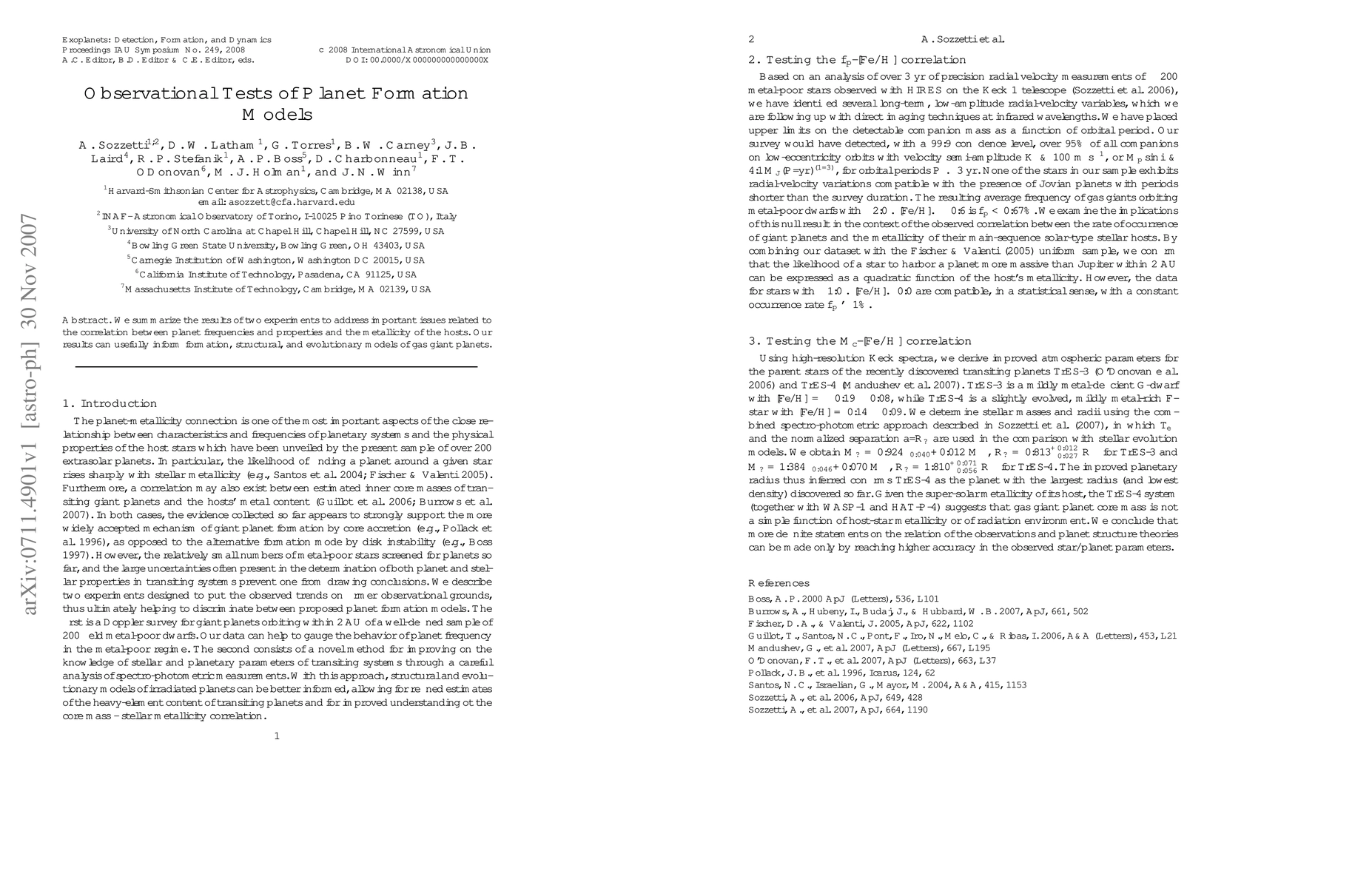 The paper presents results from experiments examining the link between planet occurrence and metallicity of host stars, offering insights for refining planet formation and evolution models.