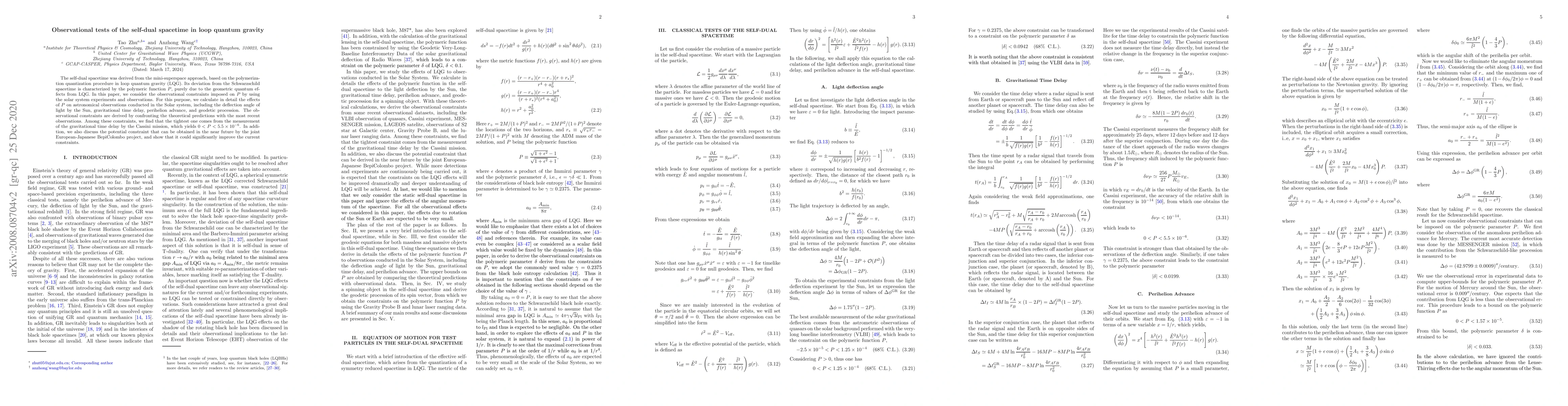 New research on loop quantum gravity finds that a self-dual spacetime, which deviates from Schwarzschild spacetime, imposes constraints on observations in the solar system, with one constraint yielding $0<P<5.5 imes 10^{-6}$.