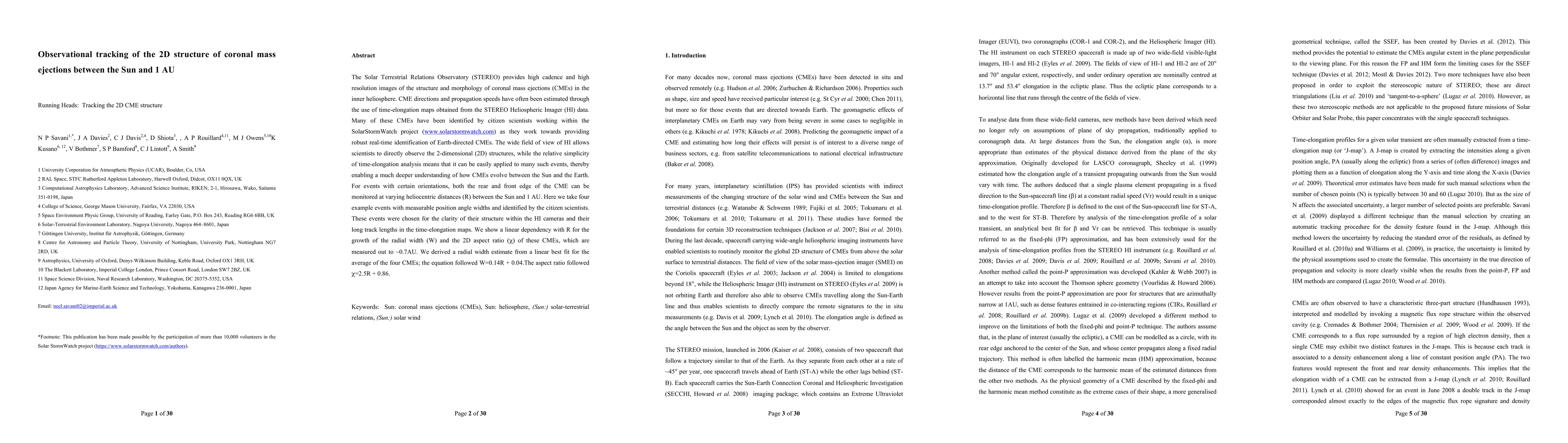 Researchers used STEREO data to study the 2D structure of coronal mass ejections between the Sun and 1 AU, finding linear relationships between radial width and distance from the Sun.
