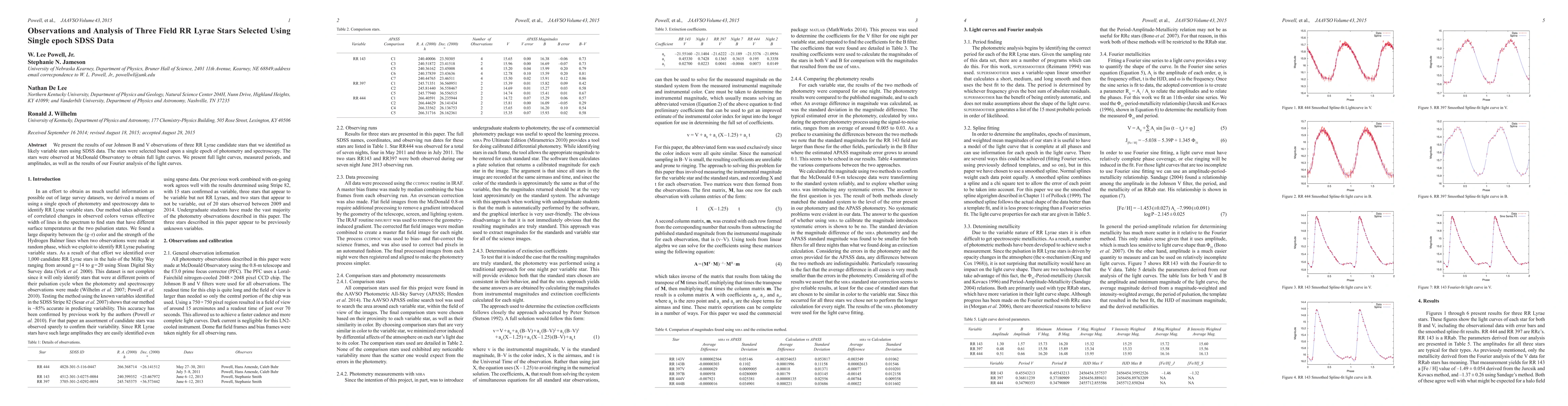 We present the results of our Johnson B and V observations of three RR Lyrae candidate stars that we identified as likely variable stars using SDSS data. The stars were selected based upon a single epoch of photometry and spectroscopy. The stars were observed at McDonald Observatory to obtain full light curves. We present full light curves, measured periods, and amplitudes, as well as the results of our Fourier analysis of the light curves.