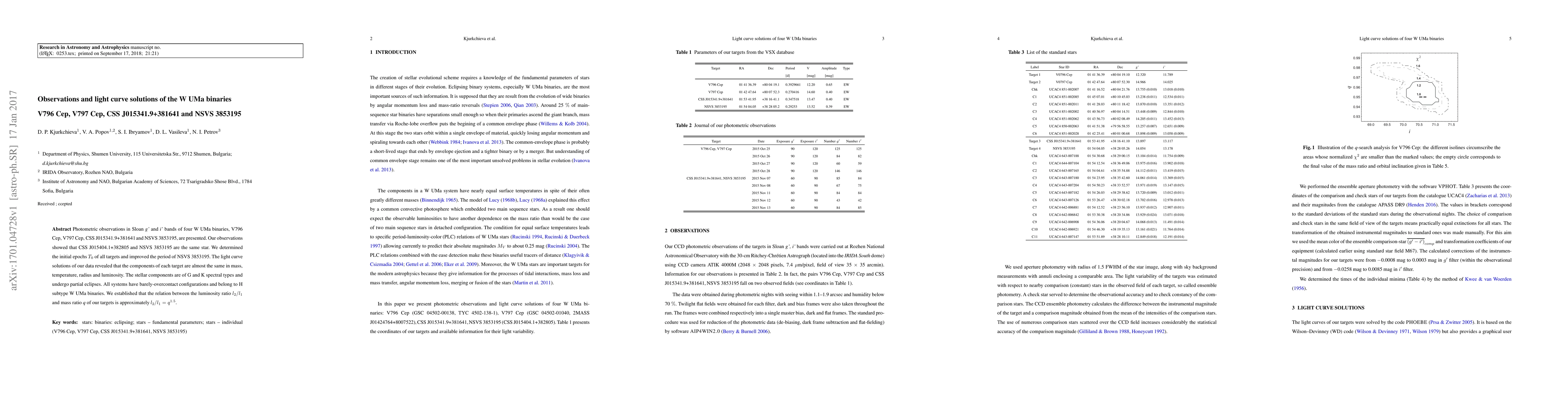 Photometric observations in Sloan g' and i' bands of four W UMa binaries, V796 Cep, V797 Cep, CSS J015341.9+381641 and NSVS 3853195, are presented. Our observations showed that CSS J015404.1+382805 and NSVS 3853195 are the same star. We determined the initial epochs T_{0} of all targets and improved the period of NSVS 3853195. The light curve solutions of our data revealed that the components of each target are almost the same in mass, temperature, radius and luminosity. The stellar components are of G and K spectral types and undergo partial eclipses. All systems have barely-overcontact configurations and belong to H subtype W UMa binaries. We established that the relation between the luminosity ratio l_{2}/l_{1} and mass ratio q of our targets is approximately l_{2}/l_{1} = q^{1.5}.