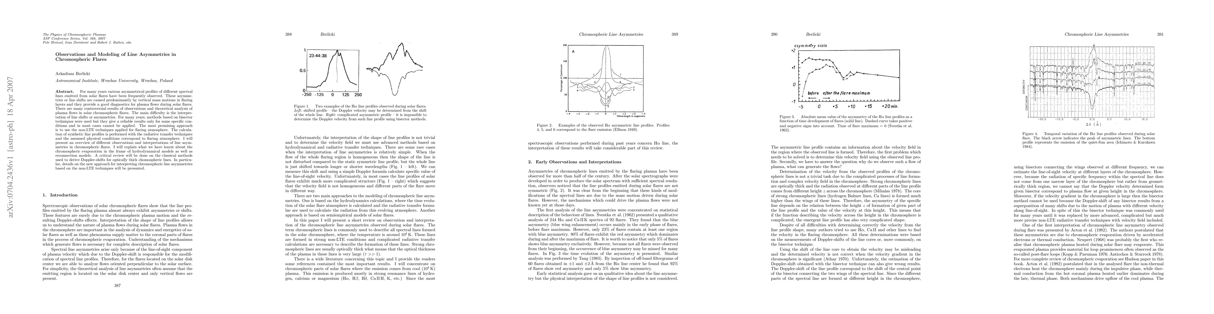 This paper reviews observations and modeling of line asymmetries in chromospheric flares, focusing on the interpretation of spectral line shifts caused by vertical mass motions. It critiques traditional bisector techniques and introduces non-LTE methods for more accurate diagnostics of plasma flows, alongside a review of hydrodynamical and reconnection models for chromospheric evaporation.