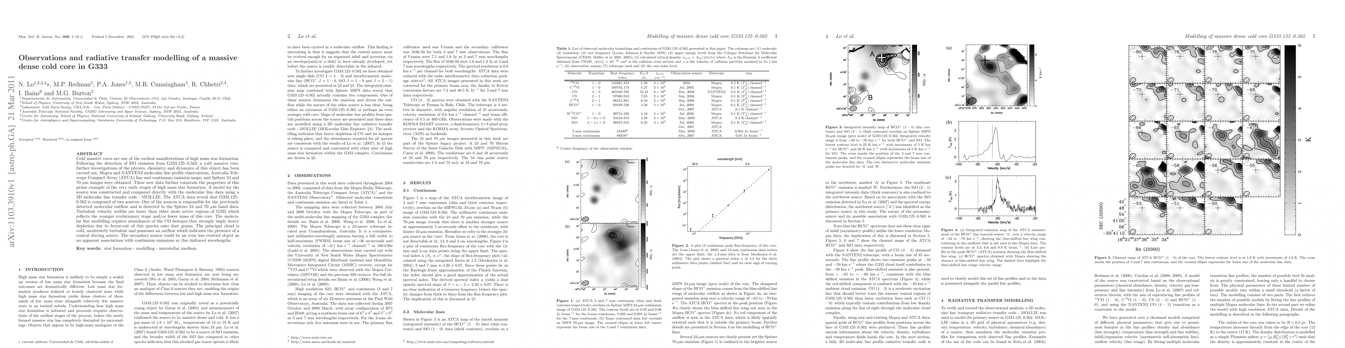 Cold massive cores are one of the earliest manifestations of high mass star formation. Following the detection of SiO emission from G333.125-0.562, a cold massive core, further investigations of the physics, chemistry and dynamics of this object has been carried out. Mopra and NANTEN2 molecular line profile observations, Australia Telescope Compact Array (ATCA) line and continuum emission maps, and Spitzer 24 and 70 \mum images were obtained. These new data further constrain the properties of this prime example of the very early stages of high mass star formation. A model for the source was constructed and compared directly with the molecular line data using a 3D molecular line transfer code - MOLLIE. The ATCA data reveal that G333.125-0.562 is composed of two sources. One of the sources is responsible for the previously detected molecular outflow and is detected in the Spitzer 24 and 70 \mum band data. Turbulent velocity widths are lower than other more active regions of G333 which reflects the younger evolutionary stage and/or lower mass of this core. The molecular line modelling requires abundances of the CO isotopes that strongly imply heavy depletion due to freeze-out of this species onto dust grains. The principal cloud is cold, moderately turbulent and possesses an outflow which indicates the presence of a central driving source. The secondary source could be an even less evolved object as no apparent associations with continuum emissions at (far-)infrared wavelengths.