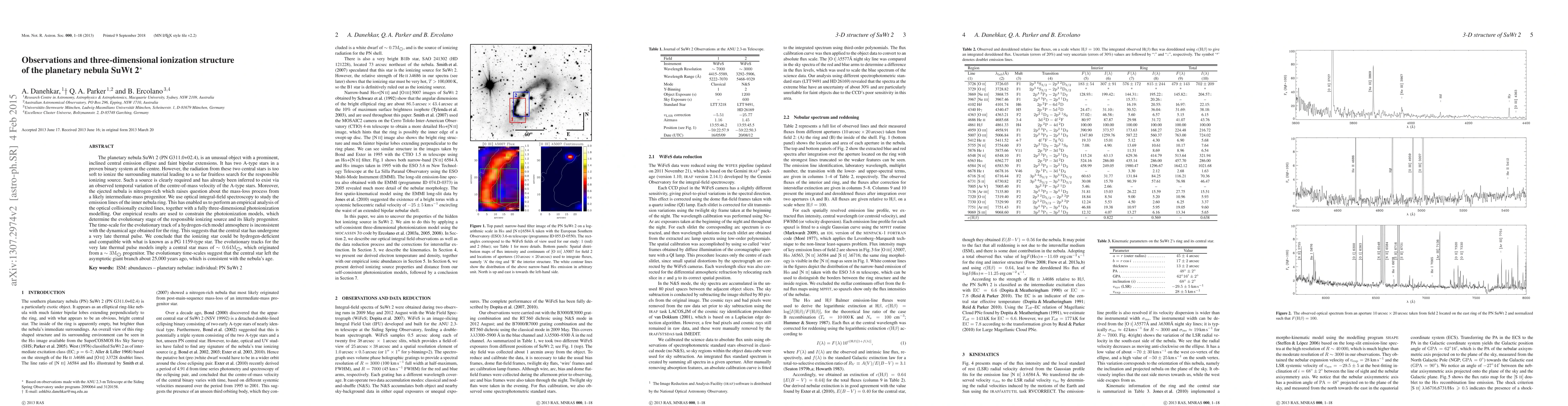 The study utilized optical integral-field spectroscopy to analyze the emission lines of the inner nebula ring of SuWt 2, combining empirical analysis of collisionally excited lines with three-dimensional photoionization modeling.