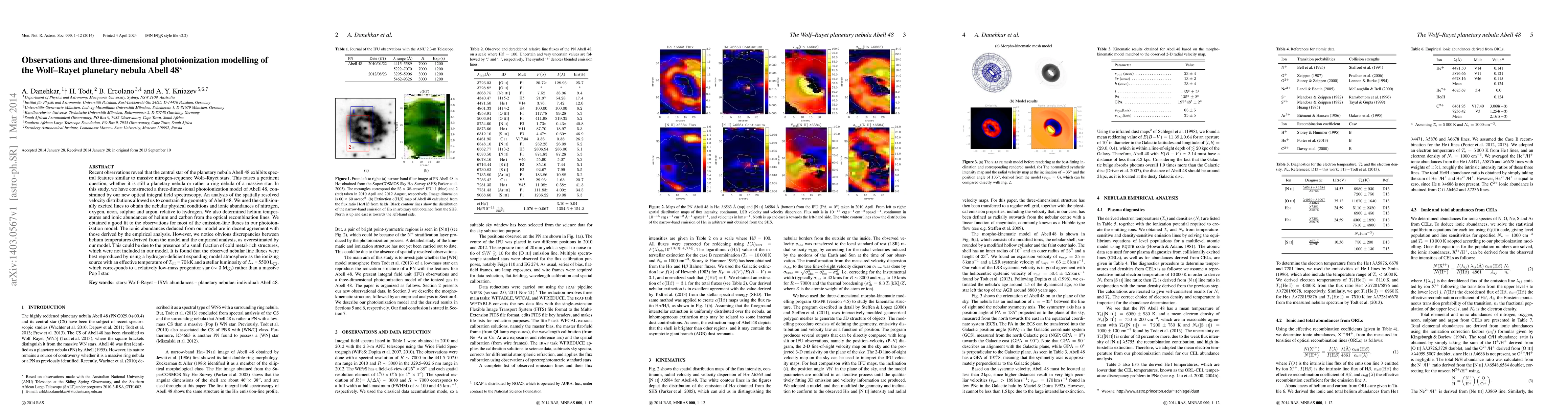 This paper presents a three-dimensional photoionization model of the planetary nebula Abell 48, revealing its central star's spectral features akin to nitrogen-sequence Wolf-Rayet stars. The model, constrained by new optical spectroscopy, suggests a hydrogen-deficient expanding atmosphere with an effective temperature of 70 kK, indicating a low-mass progenitor star (~3 M_sun).