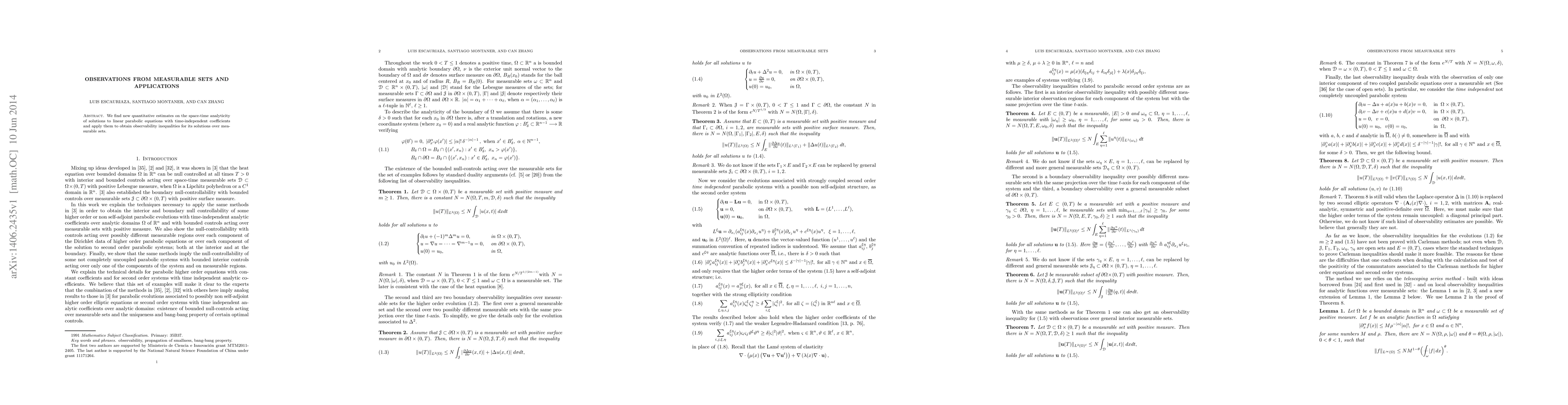 Summary: This paper provides new quantitative estimates on the space-time analyticity of solutions to linear parabolic equations and uses these estimates to derive observability inequalities for solutions over measurable sets.