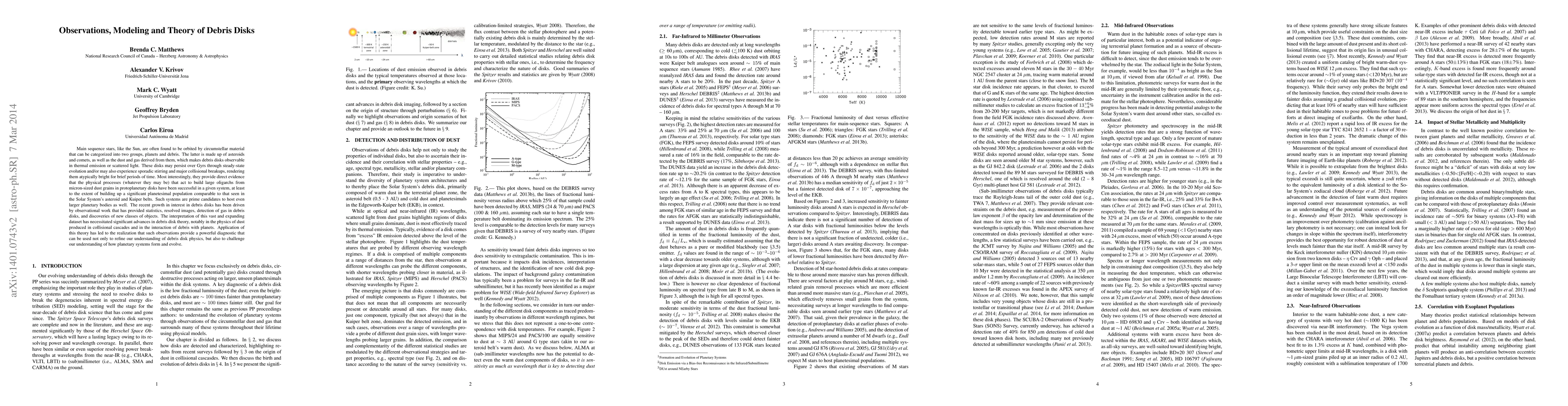 This paper reviews observations, modeling, and theoretical advances regarding debris disks around main sequence stars, emphasizing the evidence they provide for planetary system formation and evolution. It highlights the importance of these disks in understanding collisional processes and the potential for hosting larger planetary bodies.