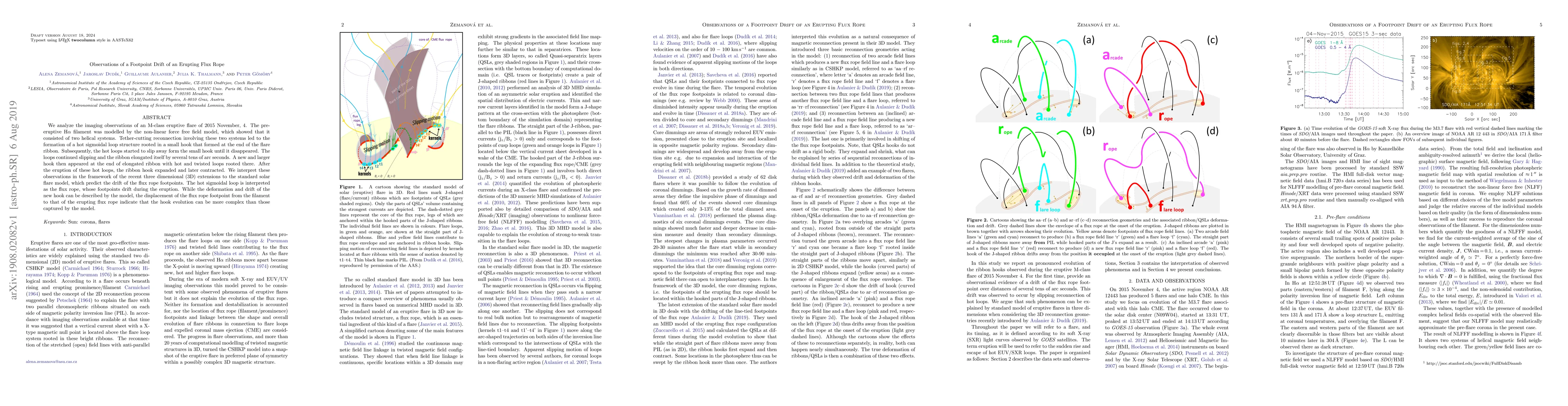 We analyze the imaging observations of an M-class eruptive flare of 2015 November, 4. The pre-eruptive H alpha filament was modelled by the non-linear force free field model, which showed that it consisted of two helical systems. Tether-cutting reconnection involving these two systems led to the formation of a hot sigmoidal loop structure rooted in a small hook that formed at the end of the flare ribbon. Subsequently, the hot loops started to slip away form the small hook until it disappeared. The loops continued slipping and the ribbon elongated itself by several tens of arc seconds. A new and larger hook then appeared at the end of elongated ribbon with hot and twisted loops rooted there. After the eruption of these hot loops, the ribbon hook expanded and later contracted. We interpret these observations in the framework of the recent three dimensional (3D) extensions to the standard solar flare model, which predict the drift of the flux rope footpoints. The hot sigmoidal loop is interpreted as the flux rope, whose footpoints drift during the eruption. While the deformation and drift of the new hook can be described by the model, the displacement of the flux rope footpoint from the filament to that of the erupting flux rope indicate that the hook evolution can be more complex than those captured by the model.