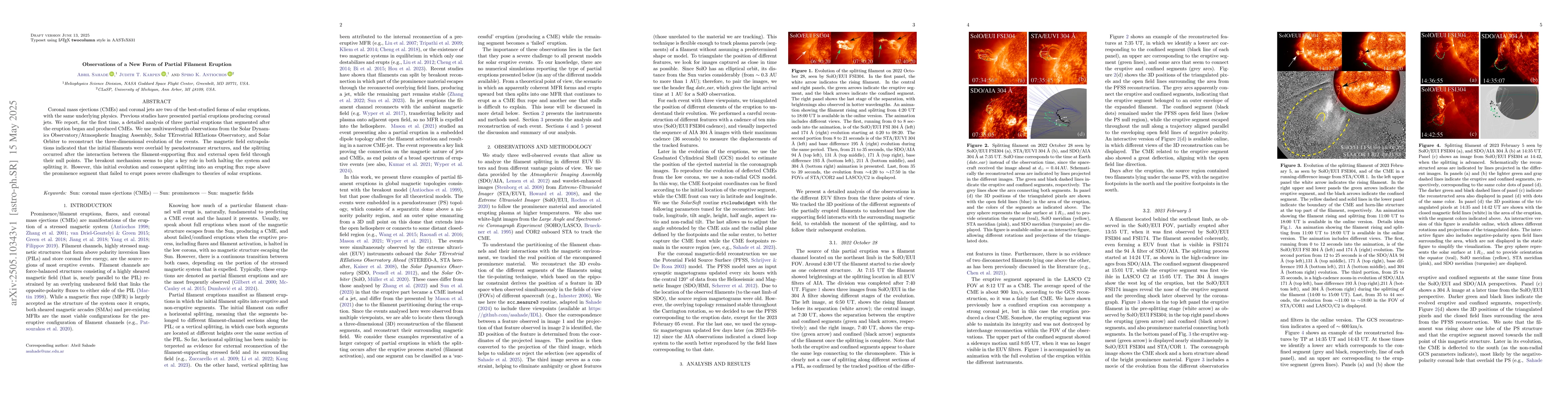 Reveals a new form of partial filament eruption resulting in CMEs, contrasting previous observations of such events leading only to coronal jets.