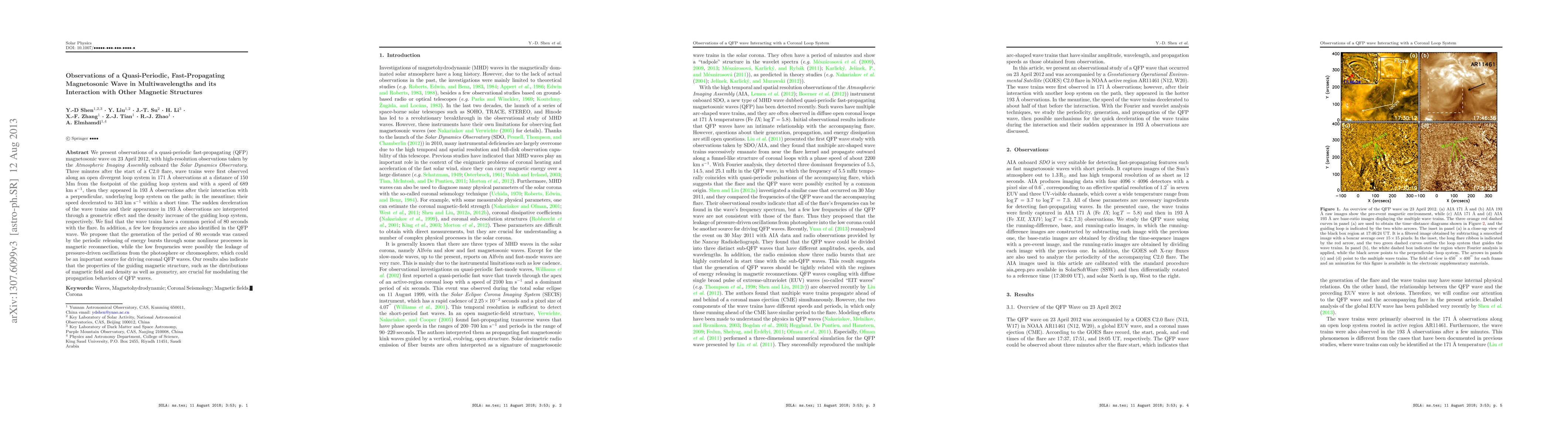 This study observes a quasi-periodic fast propagating magnetosonic wave in the solar corona, which decelerates upon interaction with underlying magnetic structures. The wave's period of 80 s is linked to magnetic reconnection processes, while low frequencies suggest pressure-driven oscillations from lower solar layers. The findings highlight the role of magnetic structure properties in modulating wave propagation.