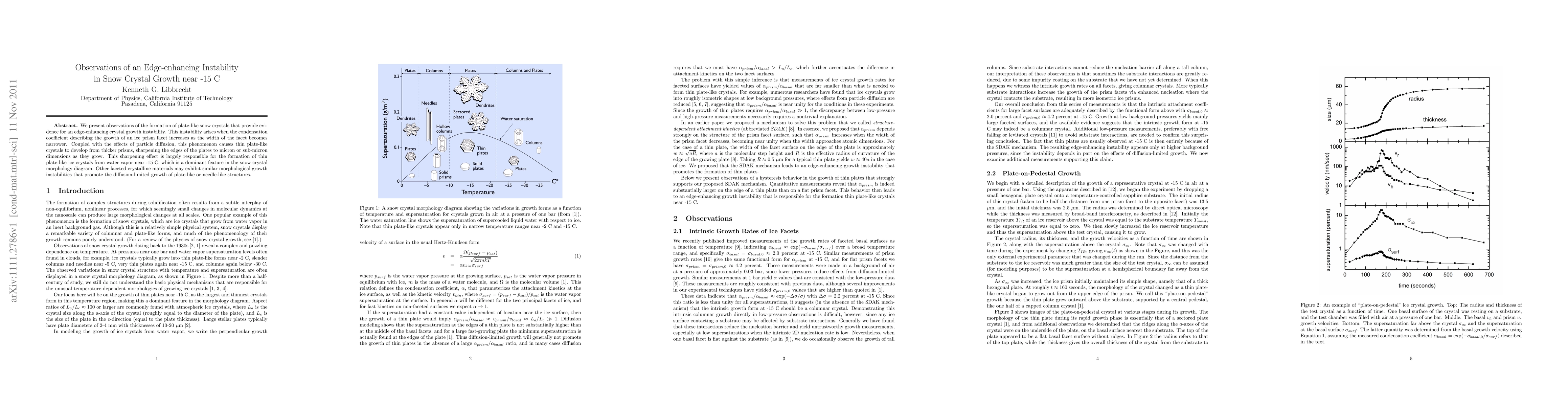 We present observations of the formation of plate-like snow crystals that provide evidence for an edge-enhancing crystal growth instability. This instability arises when the condensation coefficient describing the growth of an ice prism facet increases as the width of the facet becomes narrower. Coupled with the effects of particle diffusion, this phenomenon causes thin plate-like crystals to develop from thicker prisms, sharpening the edges of the plates to micron or sub-micron dimensions as they grow. This sharpening effect is largely responsible for the formation of thin plate-like ice crystals from water vapor near -15 C, which is a dominant feature in the snow crystal morphology diagram. Other faceted crystalline materials may exhibit similar morphological growth instabilities that promote the diffusion-limited growth of plate-like or needle-like structures.
