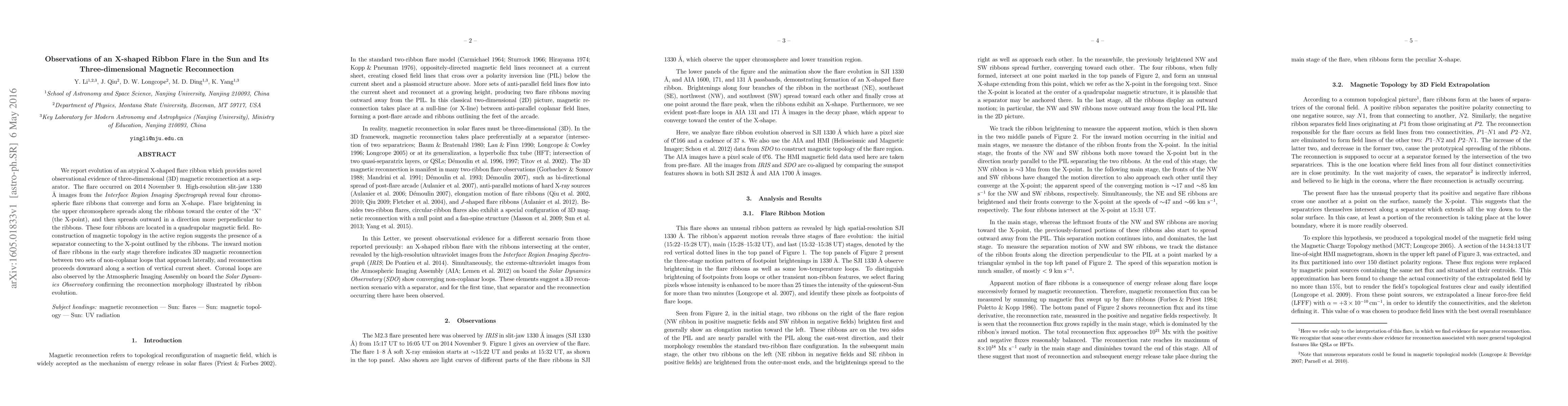 This paper reports the evolution of an X-shaped ribbon flare, providing evidence of three-dimensional magnetic reconnection at a separator. High-resolution observations reveal four converging chromospheric ribbons forming an X-shape, indicating reconnection between non-coplanar loops and a vertical current sheet.