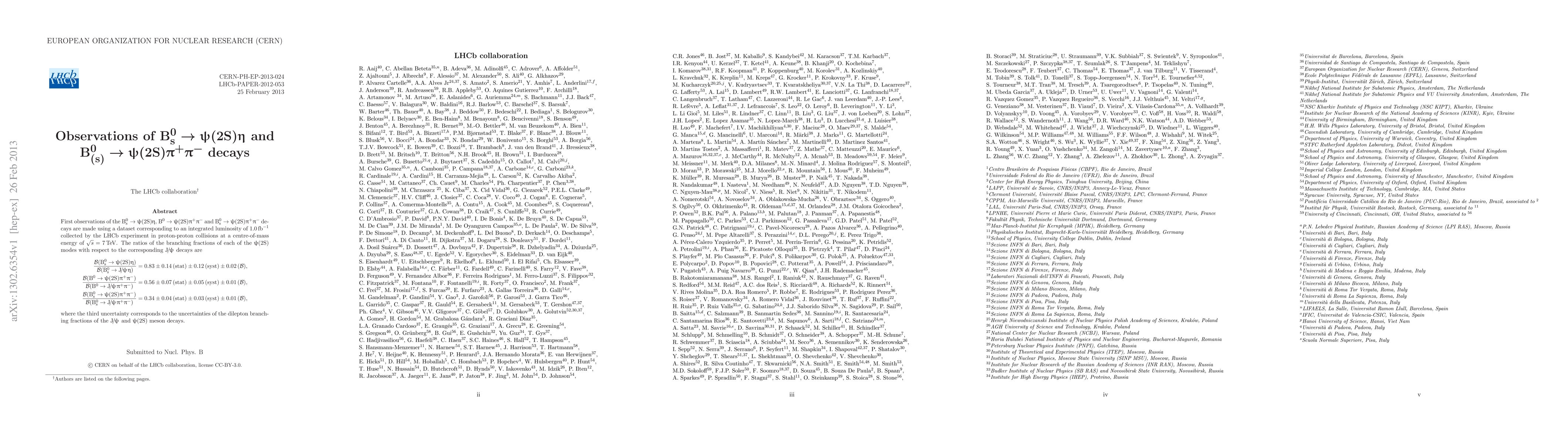 First observations of the $B^0_s \rightarrow \psi(2S) \eta$, $B^0 \rightarrow \psi(2S) \pi^+ \pi^-$ and $B^0_s \rightarrow \psi(2S) \pi^+ \pi^-$ decays are made using a dataset corresponding to an integrated luminosity of 1.0~$fb^{-1}$ collected by the LHCb experiment in proton-proton collisions at a centre-of-mass energy of $\sqrt{s}=7$ TeV. The ratios of the branching fractions of each of the $\psi(2S)$ modes with respect to the corresponding $J/\psi$ decays are \[ \frac{\mathcal{B}(B^0_s \rightarrow \psi(2S) \eta) }{\mathcal{B}(B^0_s \rightarrow J/\psi \eta)} =0.83\pm0.14\,(stat)\pm0.12\,(syst)\pm0.02\,(\mathcalB}), \] \[ \frac{\mathcal{B}(B^0 \rightarrow \psi(2S) \pi^+ \pi^-)}{\mathcal{B}(B^0 \rightarrow J/\psi \pi^+ \pi^-)} =0.56\pm0.07\,(stat)\pm0.05\,(syst)\pm0.01\,(\mathcal{B}), \] \[ \frac{\mathcal{B}(B^0_s \rightarrow \psi(2S) \pi^+ \pi^-)}{\mathcal{B}(B^0_s \rightarrow J/\psi \pi^+ \pi^-)} =0.34\pm0.04\,(stat)\pm0.03\,(syst)\pm0.01\,(\mathcal{B}), \] where the third uncertainty corresponds to the uncertainties of the dilepton branching fractions of the $J/\psi$ and $\psi(2S)$ meson decays.