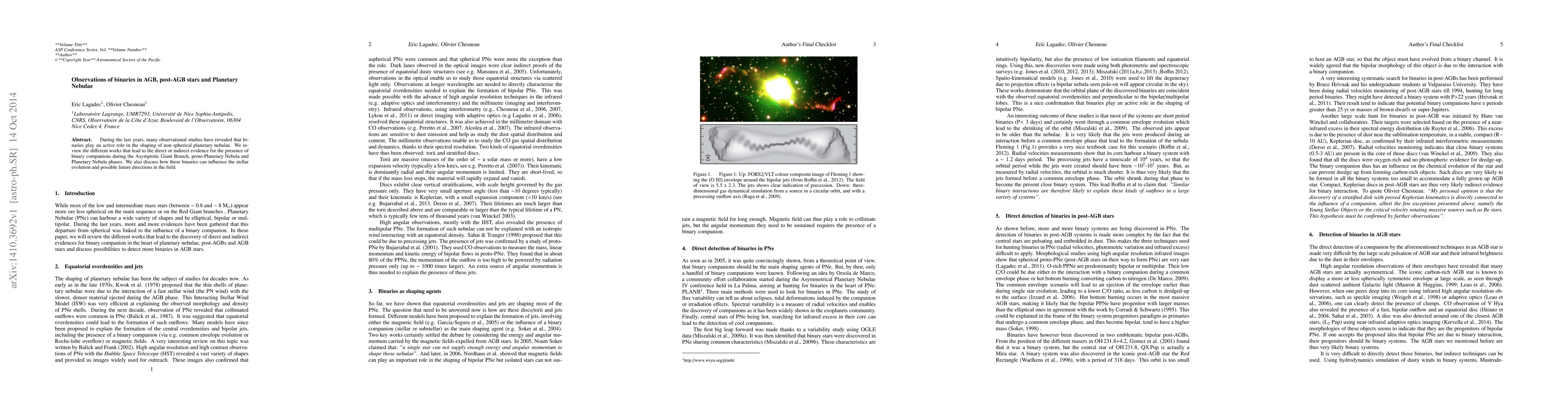 This paper reviews observational evidence for binary companions in Asymptotic Giant Branch, proto-Planetary Nebula, and Planetary Nebula phases, highlighting their role in shaping non-spherical planetary nebulae and influencing stellar evolution. Future research directions in this field are also discussed.