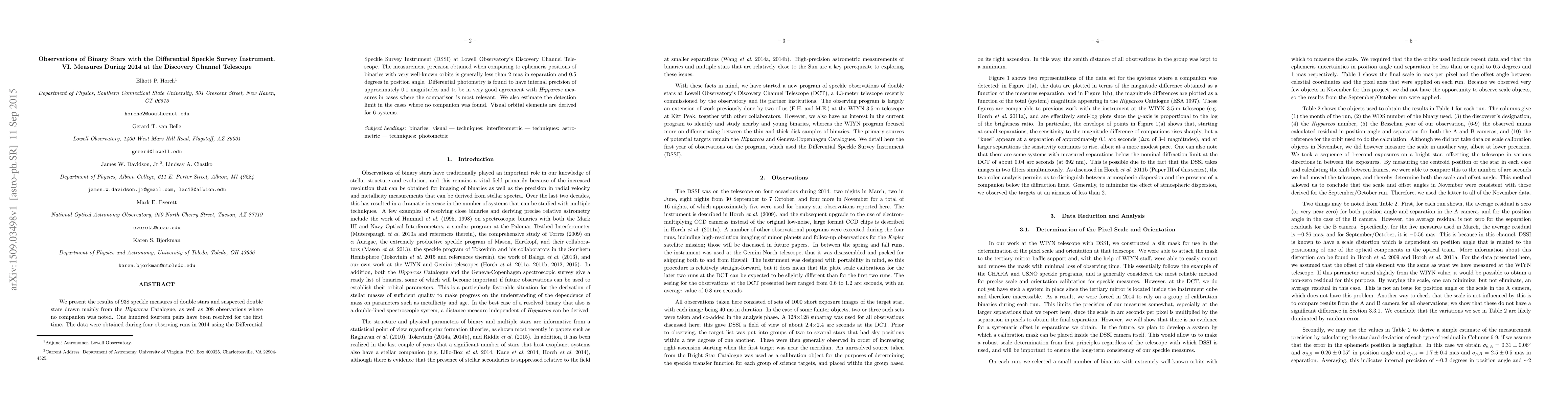 This paper reports 938 new speckle measures of double stars from the DSSI at the Discovery Channel Telescope in 2014, resolving 114 pairs for the first time. The instrument achieves high precision, with separation and position angle measurements typically under 2 mas and 0.5 degrees, respectively.