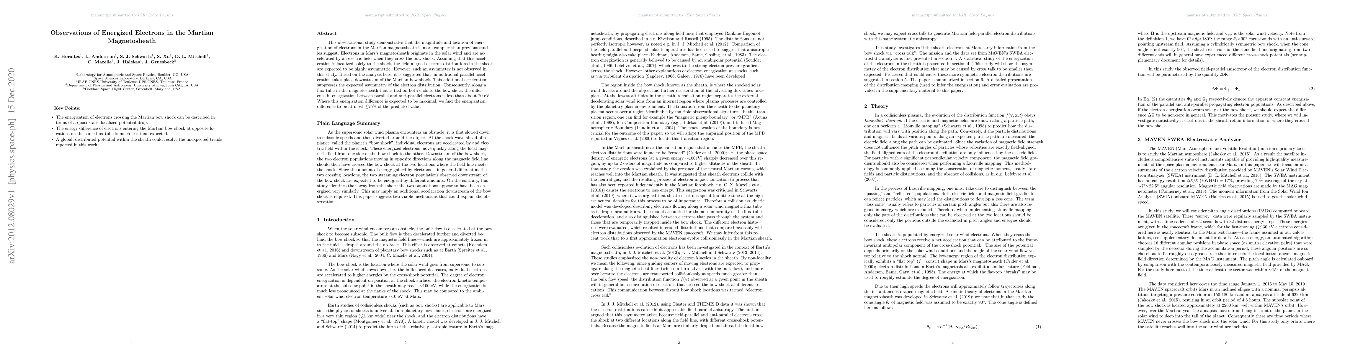 This study reveals that electrons in Mars's magnetosheath are energized by an electric field crossing the bow shock, but additional parallel acceleration downstream reduces expected asymmetry, resulting in a much lower energization difference than predicted.