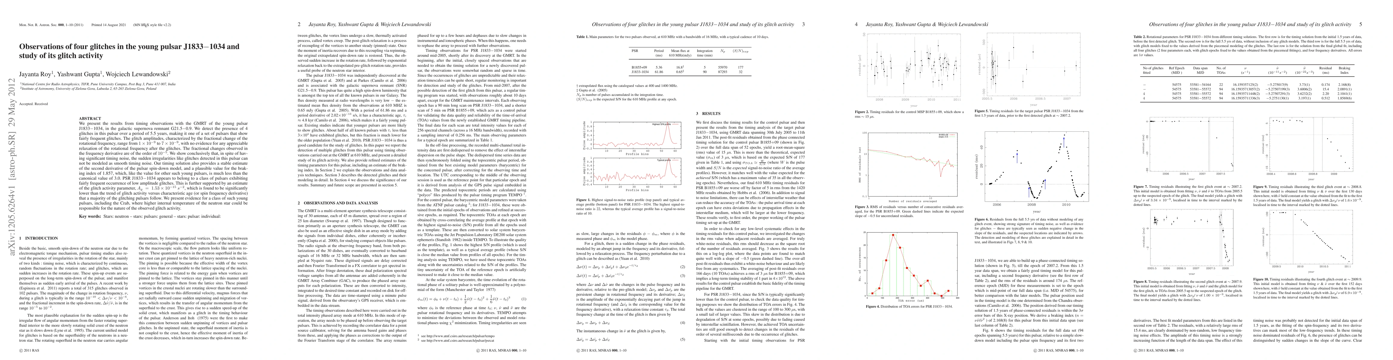 Researchers observed 4 glitches in pulsar J1833-1034 over 5 years, detecting frequent glitch activity with low amplitude changes, challenging the understanding of smooth timing noise.
