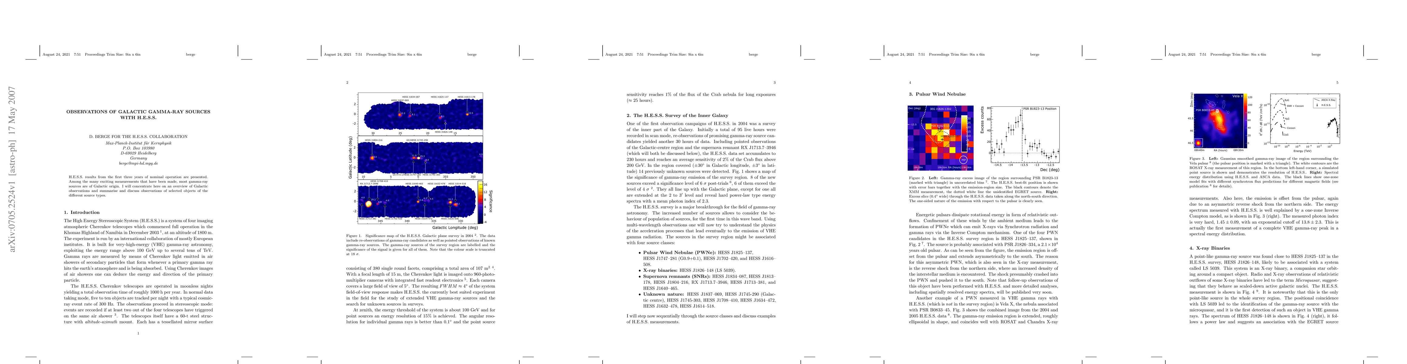 The H.E.S.S. project reports findings from the first three years of gamma-ray observations, focusing on Galactic sources. The paper provides an overview and detailed discussion of selected gamma-ray sources, categorizing them by type.