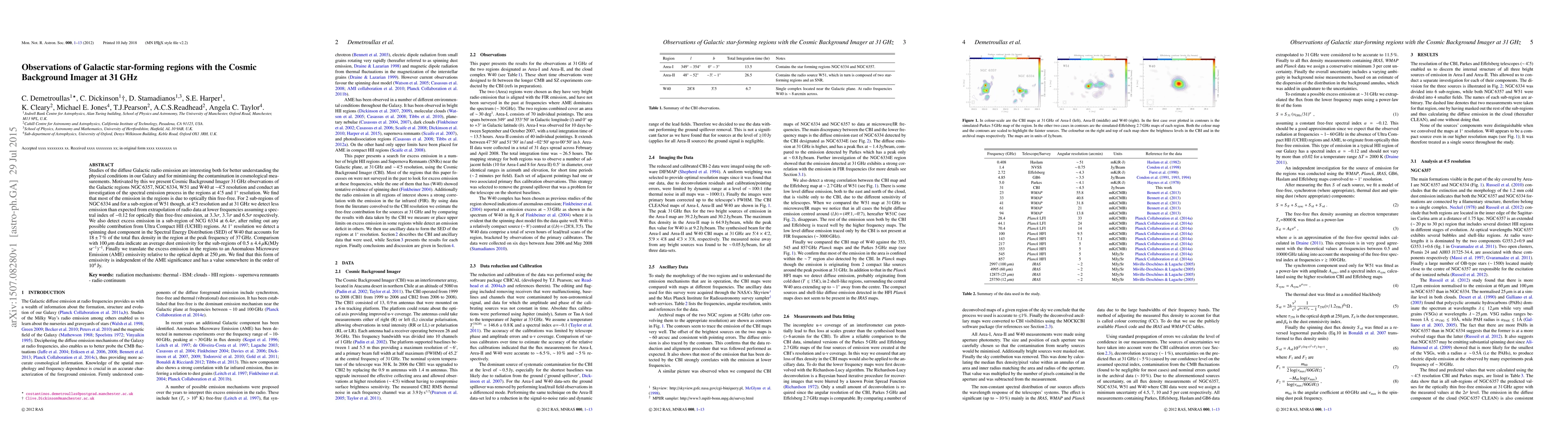 Astronomers used a cosmic background imager to study Galactic star-forming regions, finding excess emission that could be attributed to anomalous microwave emission with an emissivity of approximately 10^4 Jy.