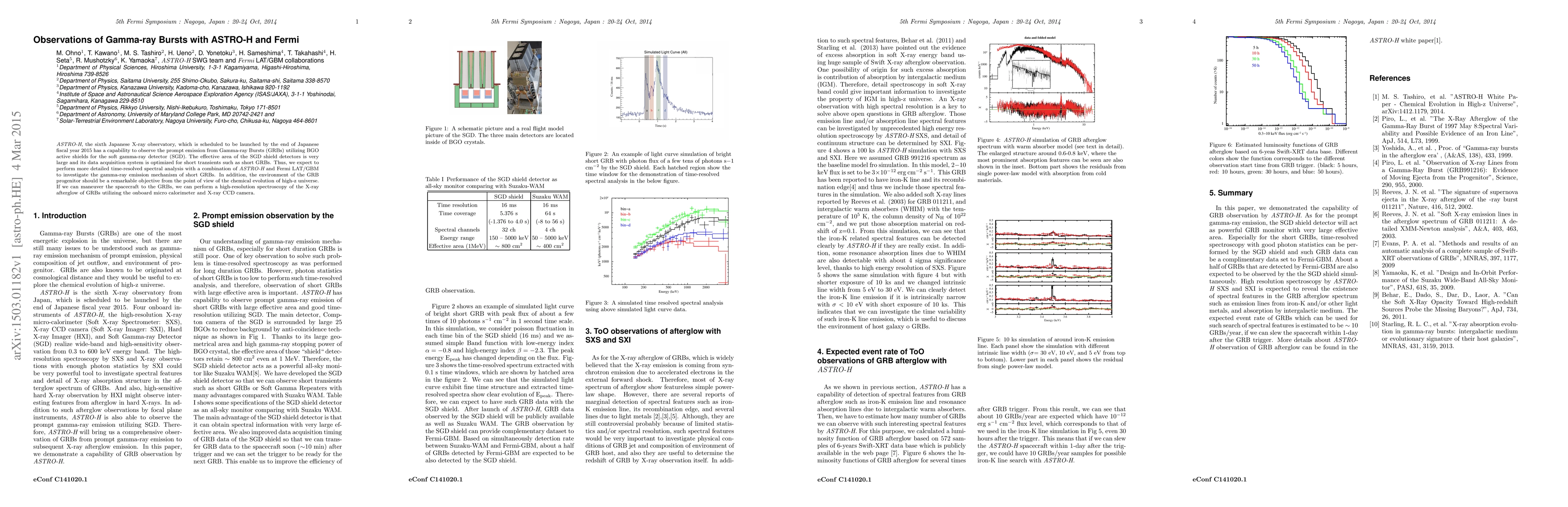 This paper discusses the capabilities of the ASTRO-H observatory to observe gamma-ray bursts (GRBs) using its large effective area soft gamma-ray detector, and plans to combine its data with Fermi to perform detailed spectral analysis of short GRBs, aiming to understand their emission mechanisms and the environments of their progenitors.