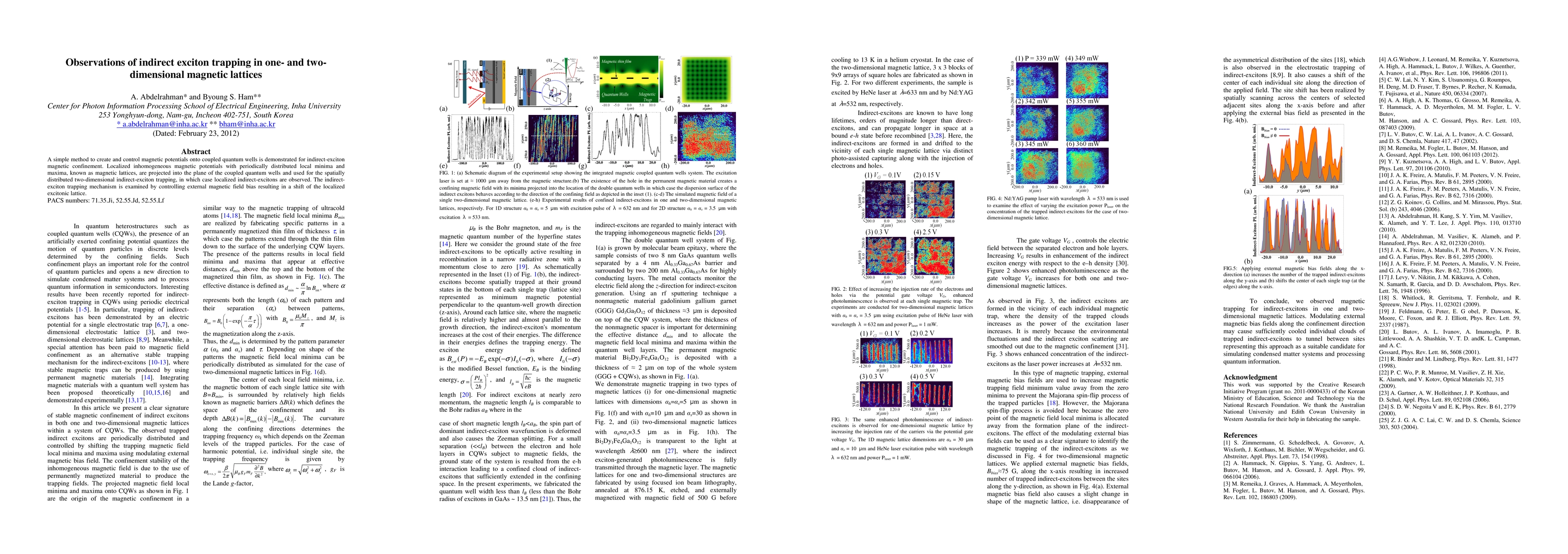 This research demonstrates a method for creating magnetic potentials in coupled quantum wells to trap indirect excitons using magnetic lattices. By manipulating external magnetic fields, the study observes shifts in the localized excitonic lattice, confirming the mechanism of indirect-exciton trapping in one- and two-dimensional magnetic environments.