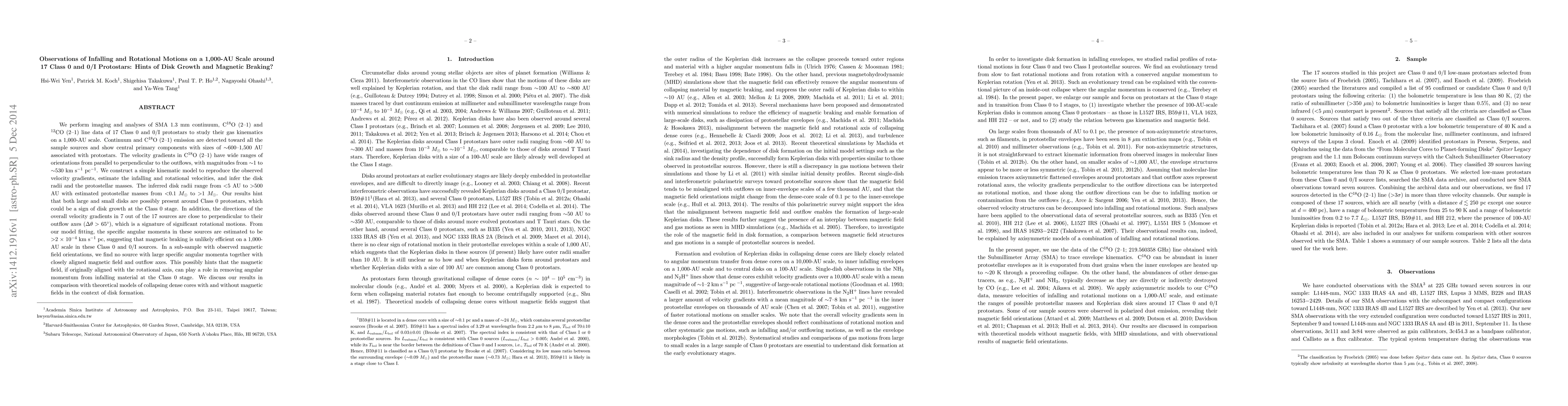 We perform imaging and analyses of SMA 1.3 mm continuum, C18O (2-1) and 12CO (2-1) line data of 17 Class 0 and 0/I protostars to study their gas kinematics on a 1,000-AU scale. Continuum and C18O (2-1) emission are detected toward all the sample sources and show central primary components with sizes of ~600-1,500 AU associated with protostars. The velocity gradients in C18O (2-1) have wide ranges of orientations from parallel to perpendicular to the outflows, with magnitudes from ~1 to ~530 km/s/pc. We construct a simple kinematic model to reproduce the observed velocity gradients, estimate the infalling and rotational velocities, and infer the disk radii and the protostellar masses. The inferred disk radii range from <5 AU to >500 AU with estimated protostellar masses from <0.1 Msun to >1 Msun. Our results hint that both large and small disks are possibly present around Class 0 protostars, which could be a sign of disk growth at the Class 0 stage. In addition, the directions of the overall velocity gradients in 7 out of the 17 sources are close to perpendicular to their outflow axes, which is a signature of significant rotational motions. From our model fitting, the specific angular momenta in these sources are estimated to be >2E-4 km/s*pc, suggesting that magnetic braking is unlikely efficient on a 1,000-AU scale in these Class 0 and 0/I sources. In a sub-sample with observed magnetic field orientations, we find no source with large specific angular momenta together with closely aligned magnetic field and outflow axes. This possibly hints that the magnetic field, if originally aligned with the rotational axis, can play a role in removing angular momentum from infalling material at the Class 0 stage. We discuss our results in comparison with theoretical models of collapsing dense cores with and without magnetic fields in the context of disk formation.