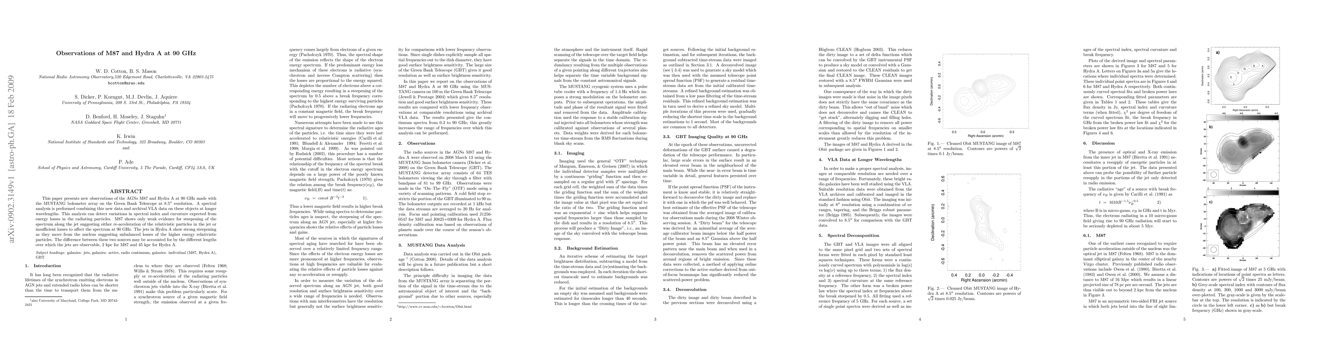 This paper reports new observations of AGNs M87 and Hydra A at 90 GHz using the MUSTANG bolometer array, revealing weak spectral steepening in M87's jet and strong steepening in Hydra A's jets, suggesting different energy loss mechanisms and observable jet lengths.