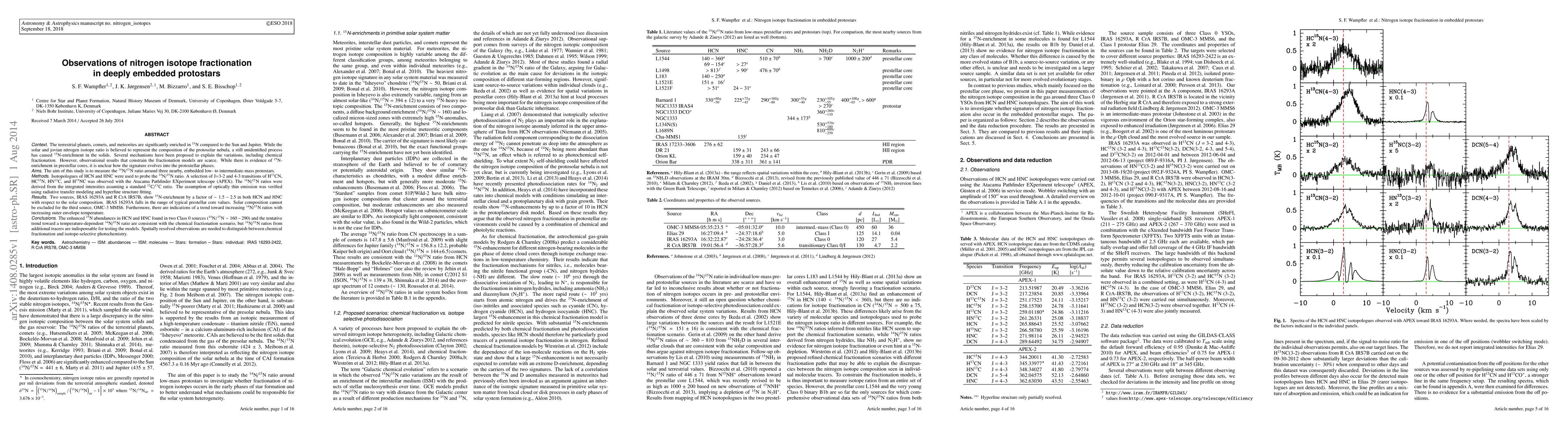 Research observes nitrogen isotope enrichment in embedded protostars, with two sources showing 1.5-2.5 times more 15N than the Sun, suggesting chemical fractionation as a possible explanation.