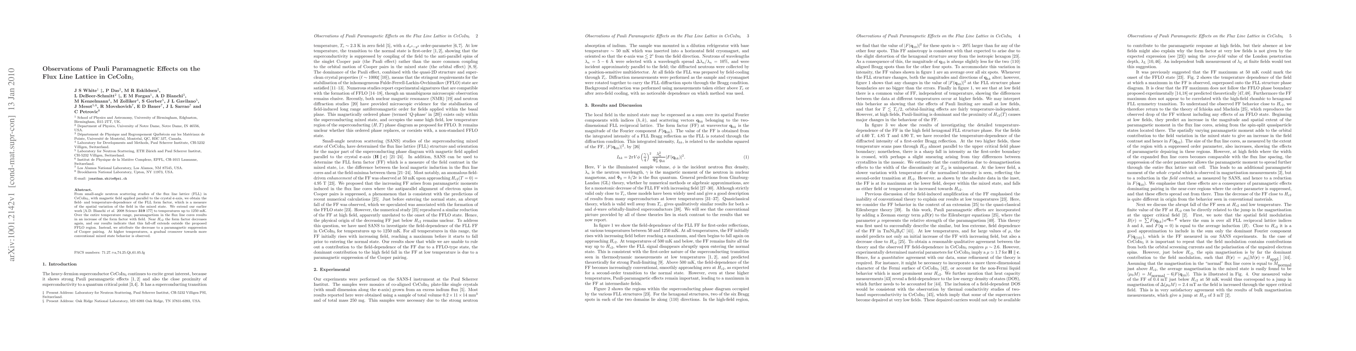 From small-angle neutron scattering studies of the flux line lattice (FLL) in CeCoIn5, with magnetic field applied parallel to the crystal c-axis, we obtain the field- and temperature-dependence of the FLL form factor, which is a measure of the spatial variation of the field in the mixed state. We extend our earlier work [A.D. Bianchi et al. 2008 Science 319, 177] to temperatures up to 1250 mK. Over the entire temperature range, paramagnetism in the flux line cores results in an increase of the form factor with field. Near H_c2 the form factor decreases again, and our results indicate that this fall-off extends outside the proposed FFLO region. Instead, we attribute the decrease to a paramagnetic suppression of Cooper pairing. At higher temperatures, a gradual crossover towards more conventional mixed state behavior is observed.