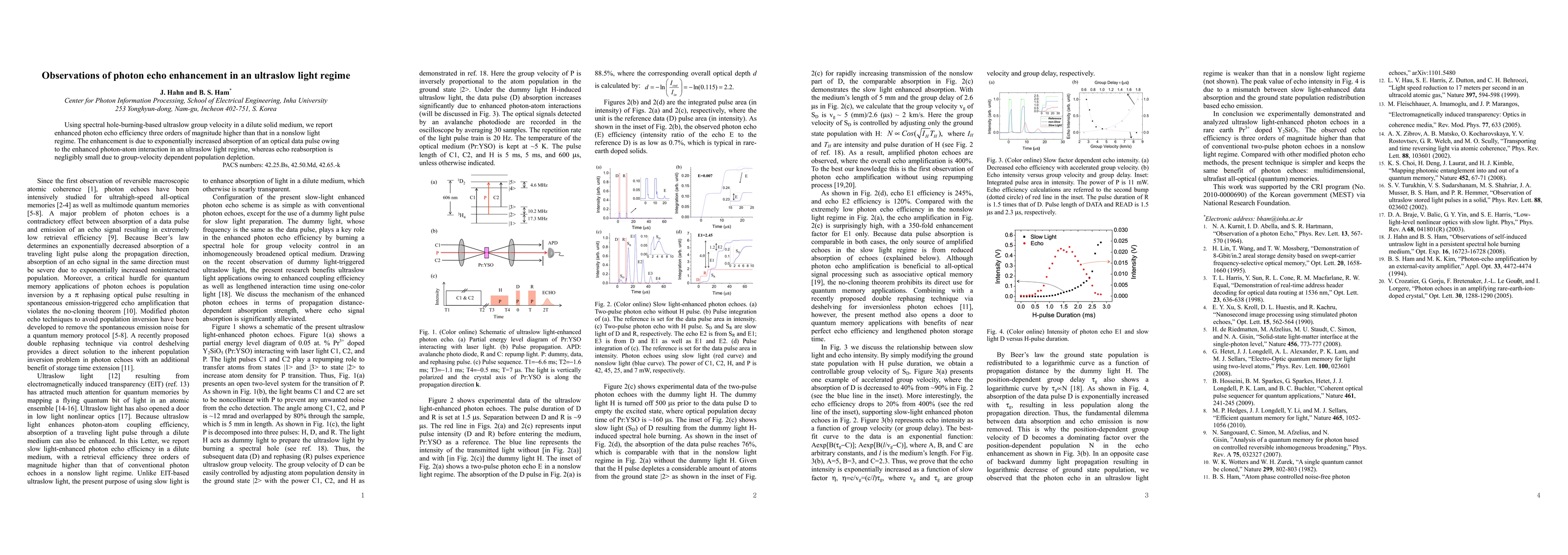 This paper reports a three-order-of-magnitude enhancement in photon echo efficiency using ultraslow light in a dilute solid medium, attributed to increased photon-atom interaction and negligible echo reabsorption due to population depletion.