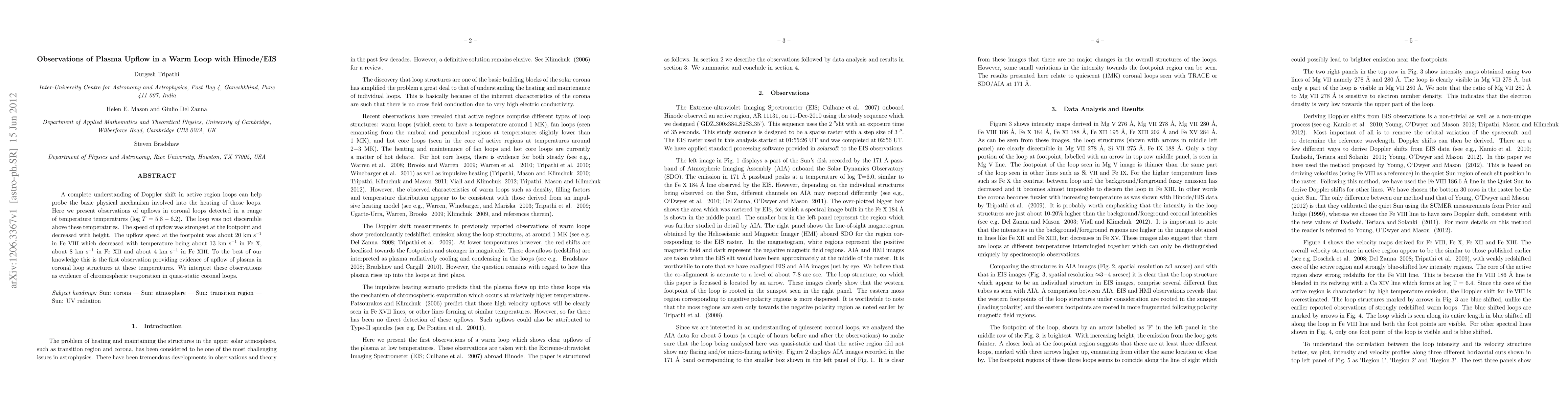 A complete understanding of Doppler shift in active region loops can help probe the basic physical mechanism involved into the heating of those loops. Here we present observations of upflows in coronal loops detected in a range of temperature temperatures (log T=5.8 - 6.2). The loop was not discernible above these temperatures. The speed of upflow was strongest at the footpoint and decreased with height. The upflow speed at the footpoint was about 20 km/s in Fe VIII which decreased with temperature being about 13 km/s in Fe X, about 8 km/s in Fe XII and about 4 km/s in FeXIII. To the best of our knowledge this is the first observation providing evidence of upflow of plasma in coronal loop structures at these temperatures. We interpret these observations as evidence of chromospheric evaporation in quasi-static coronal loops.