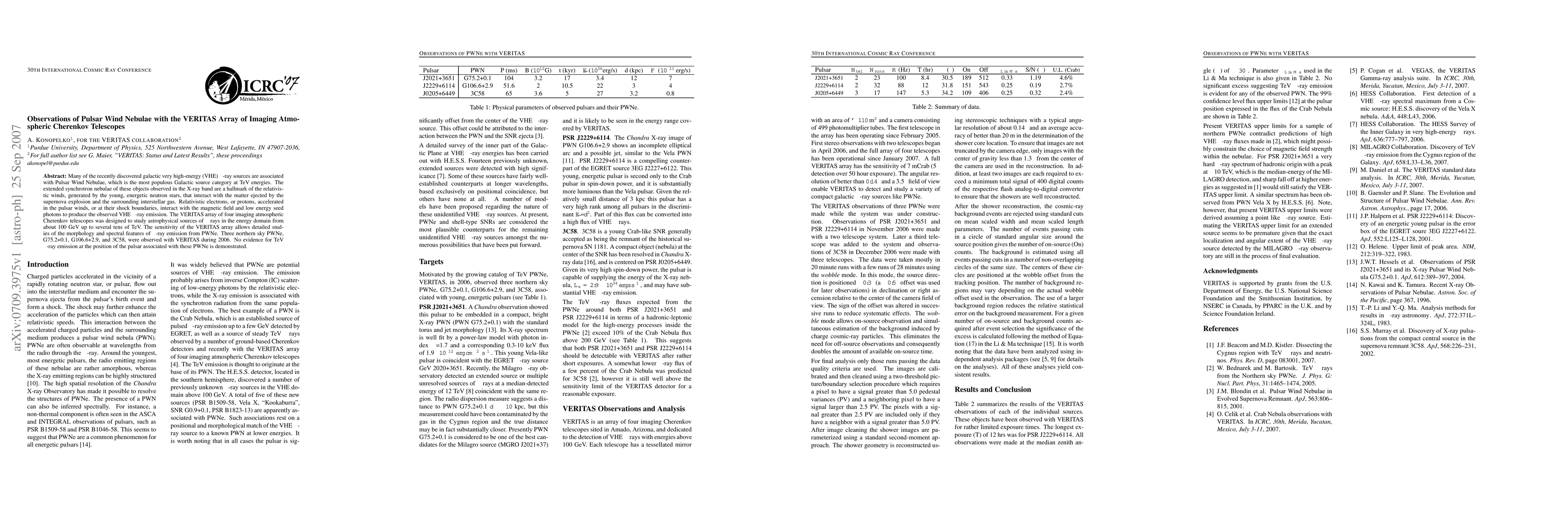 The VERITAS array observed three northern sky Pulsar Wind Nebulae, revealing their morphology and spectral features in very high-energy gamma rays, but found no evidence of TeV gamma-ray emission from the pulsars associated with these nebulae.