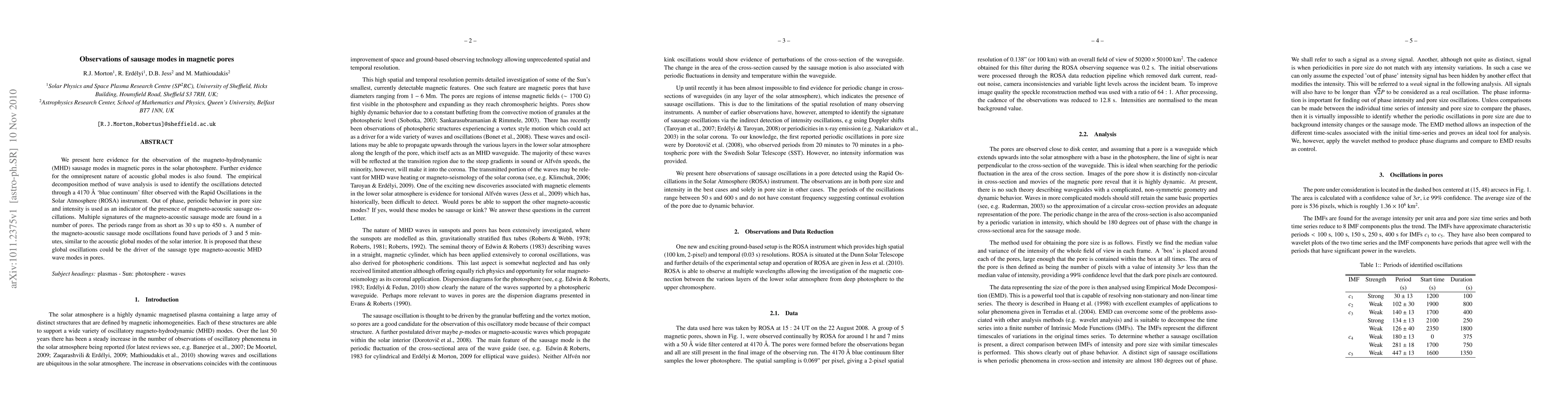 This paper reports the detection of magneto-hydrodynamic (MHD) sausage modes in magnetic pores of the solar photosphere using the ROSA instrument, with periods ranging from 30 s to 450 s, and suggests a possible link to the omnipresent acoustic global modes of the solar interior.