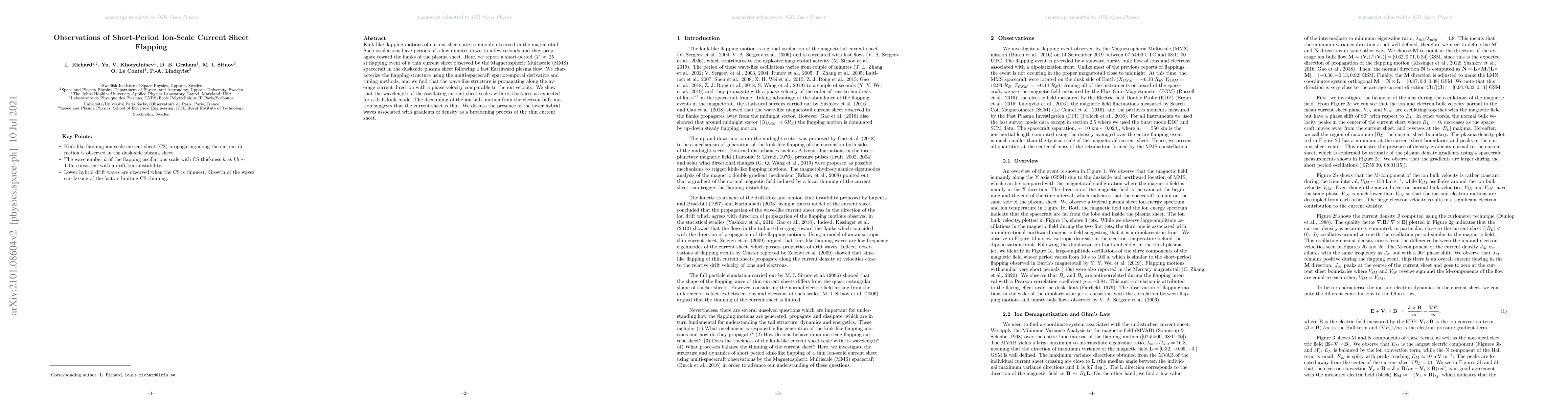 Scientists observed a short-period flapping motion of a thin current sheet in the plasma sheet, characterized by wave-like structure propagating along the average current direction with a phase velocity comparable to ion velocity.