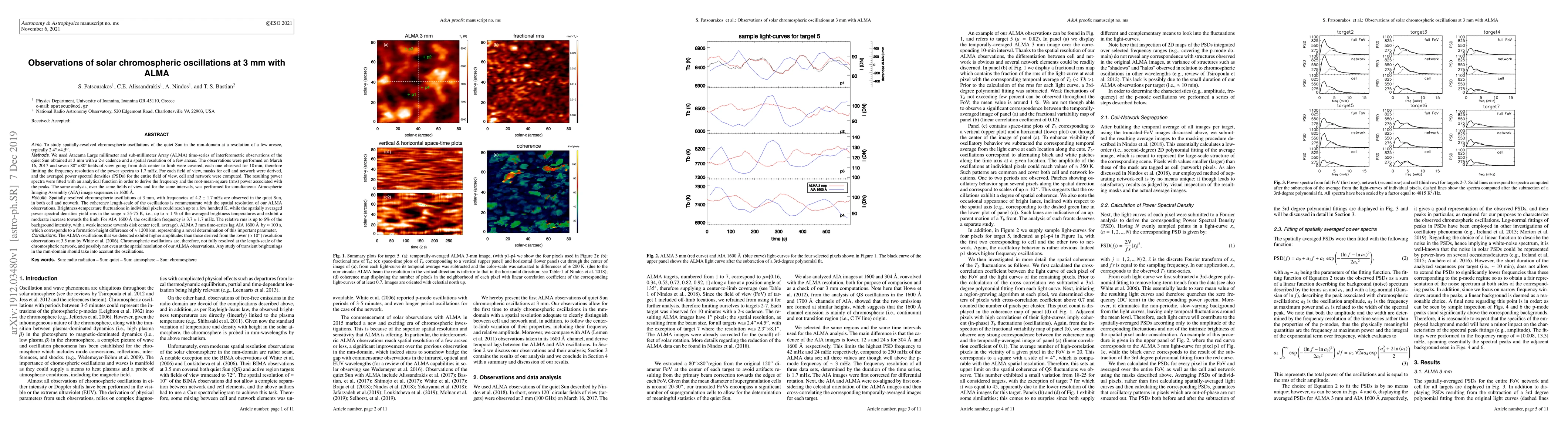We studied chromospheric oscillations using Atacama Large millimeter and sub-millimeter Array (ALMA) time-series of interferometric observations of the quiet Sun obtained at 3 mm with a 2-s cadence and a spatial resolution of a few arcsec. The same analysis, over the same fields of view and for the same intervals, was performed for simultaneous Atmospheric Imaging Assembly (AIA) image sequences in 1600 A. Spatially-resolved chromospheric oscillations at 3 mm, with frequencies of $ 4.2 +- 1.7$ mHz are observed in the quiet Sun, in both cell and network. The coherence length-scale of the oscillations is commensurate with the spatial resolution of our ALMA observations. Brightness-temperature fluctuations in individual pixels could reach up to a few hundred K, while the spatially averaged power spectral densities yield rms in the range ~ 55-75 K, i.e., up to ~ 1 % of the averaged brightness temperatures and exhibit a moderate increase towards the limb. For AIA 1600 A, the oscillation frequency is 3.7 +- 1.7 mHz. The relative rms is up to 6 % of the background intensity, with a weak increase towards disk center (cell, average). ALMA 3 mm time-series lag AIA 1600 A by ~ 100 s, which corresponds to a formation-height difference of ~ 1200 km. The ALMA oscillations that we detected exhibit higher amplitudes than those derived from the lower (~ 10 arcsec) resolution observations at 3.5 mm by White et al. (2006). Chromospheric oscillations are, therefore, not fully resolved at the length-scale of the chromospheric network, and possibly not even at the spatial resolution of our ALMA observations. Any study of transient brightenings in the mm-domain should take into account the oscillations.