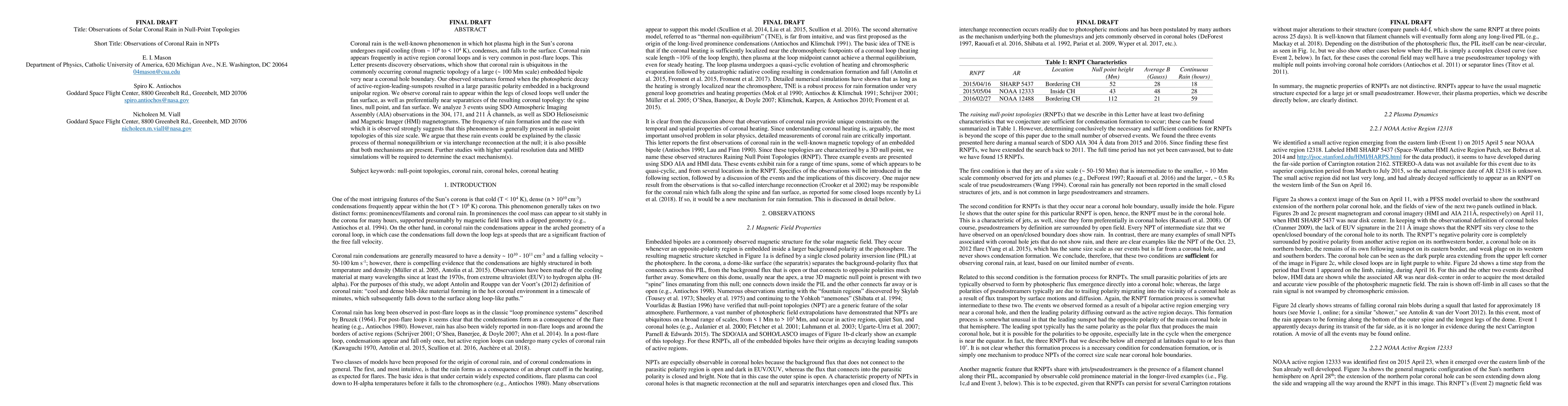 Coronal rain is found to be ubiquitous in null point topologies near coronal hole boundaries, suggesting a common phenomenon in these regions. The authors argue that thermal nonequilibrium or interchange reconnection at the null point may explain the observed rain events.