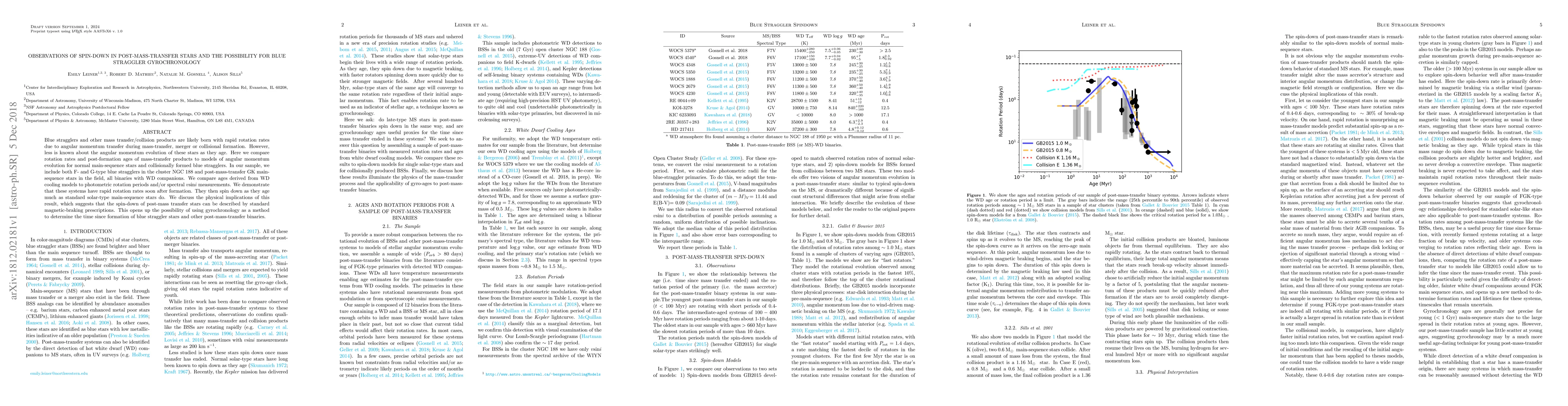 This study observes the spin-down behavior of post-mass-transfer stars and finds they lose angular momentum similarly to normal main-sequence stars, suggesting gyrochronology could estimate the formation time of blue stragglers. The findings indicate that standard magnetic-braking models apply to these stars.