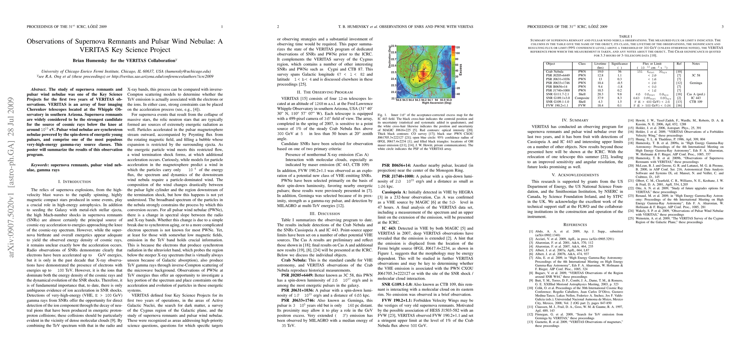 The VERITAS array of imaging Cherenkov telescopes observed supernova remnants and pulsar wind nebulae to investigate their roles as sources of cosmic rays and very-high-energy gamma rays. The findings provide insights into the origins of these phenomena and their contributions to high-energy astrophysical processes.