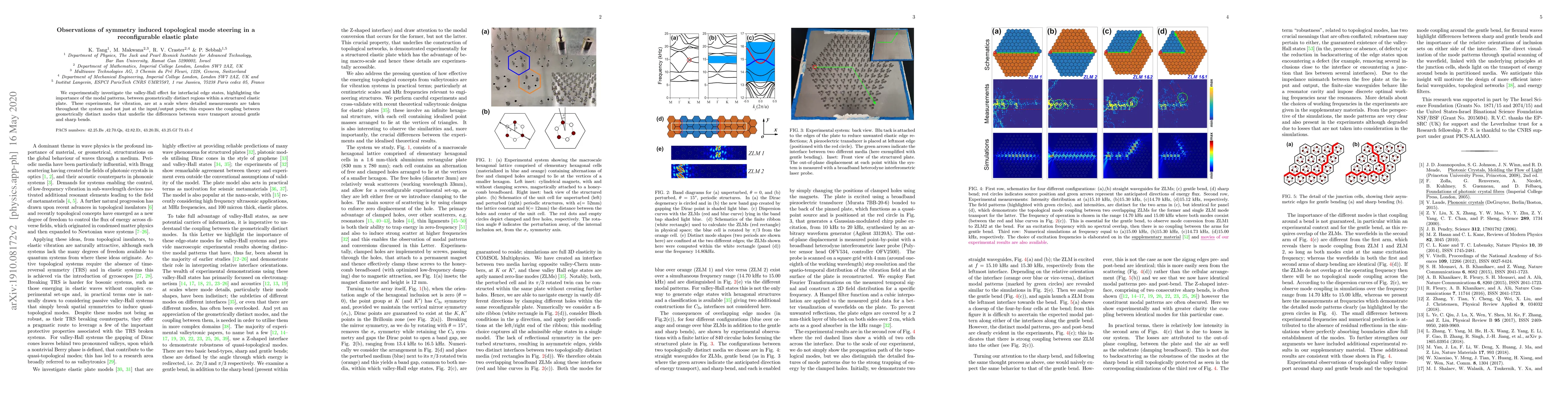 We experimentally investigate the valley-Hall effect for interfacial edge states, highlighting the importance of the modal patterns, between geometrically distinct regions within a structured elastic plate. These experiments, for vibration, are at a scale where detailed measurements are taken throughout the system and not just at the input/output ports; this exposes the coupling between geometrically distinct modes that underlie the differences between wave transport around gentle and sharp bends.