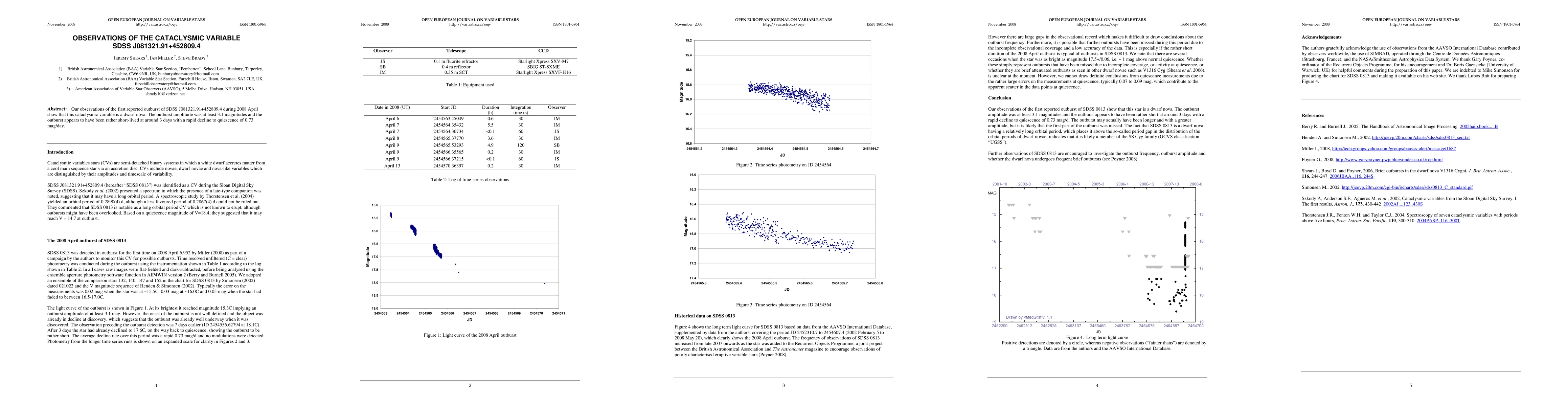 The SDSS J081321.91+452809.4 cataclysmic variable experienced a 3.1 magnitude outburst that lasted around 3 days, with the decline to quiescence being rapid.