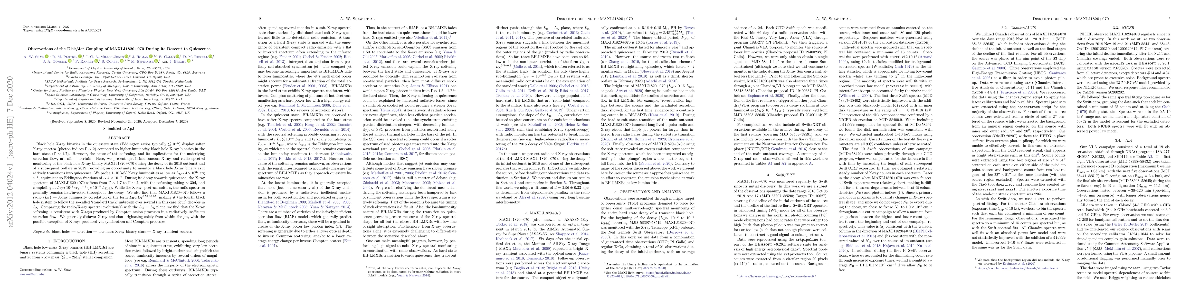 The research observes the black hole X-ray binary MAXI J1820+070 transitioning to quiescence, noting an X-ray spectrum softening from Γ∼1.7 to Γ∼2 over ~30 days. The system maintains a flat/inverted radio spectrum during this decay and follows a standard X-ray to radio luminosity correlation. The findings suggest X-rays stem from Comptonization in a radiatively inefficient accretion flow, rather than solely from the jet.