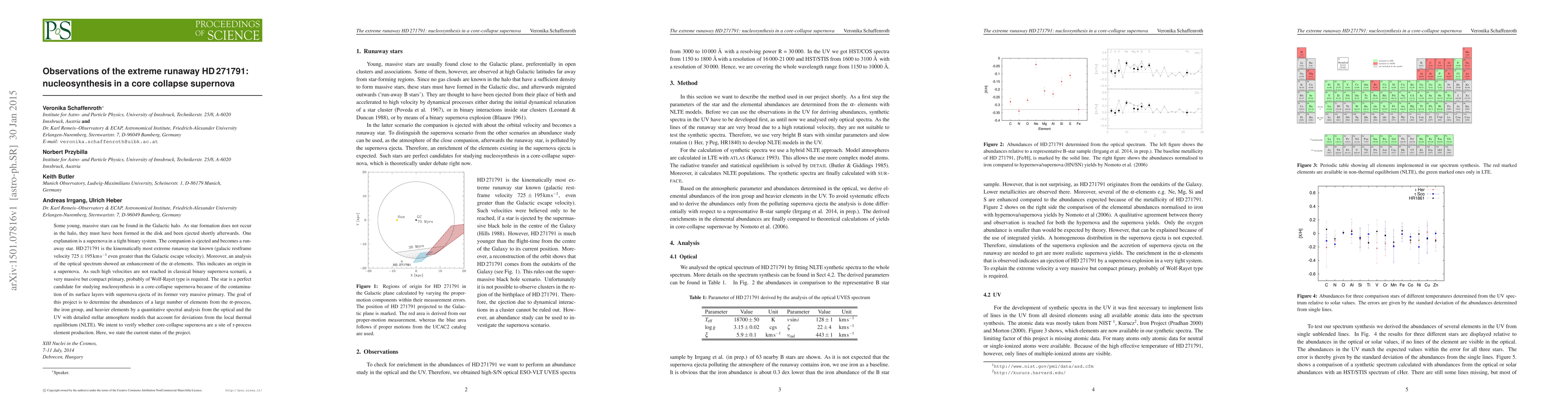 This paper investigates HD 271791, an extreme runaway star with high space velocity, suggesting it originated from a core-collapse supernova in a tight binary system. The study aims to determine the nucleosynthesis processes in such supernovae by analyzing the star's optical spectrum and verifying the production of r-process elements.