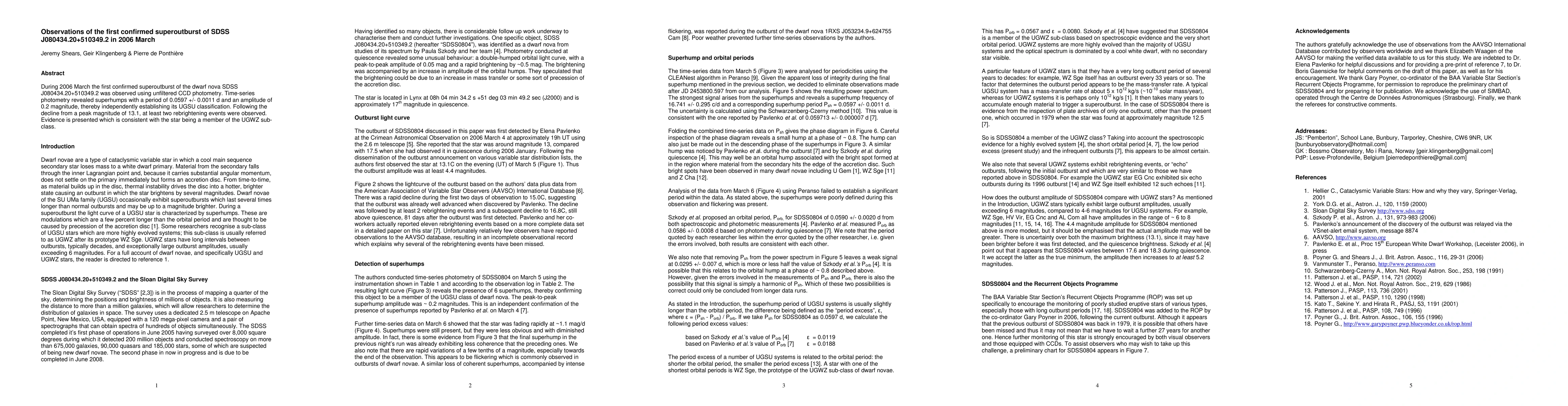 During 2006 March the first confirmed superoutburst of the dwarf nova SDSS J080434.20+510349.2 was observed using unfiltered CCD photometry. Time-series photometry revealed superhumps with a period of 0.0597 +/- 0.0011 d and an amplitude of 0.2 magnitude, thereby independently establishing its UGSU classification. Following the decline from a peak magnitude of 13.1, at least two rebrightening events were observed. Evidence is presented which is consistent with the star being a member of the UGWZ sub-class.